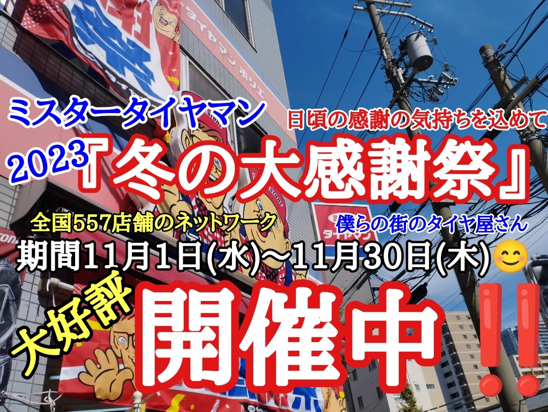 ミスタータイヤマン〖冬の大感謝祭〗好評開催中です!(((o(*゚▽゚*)o)))