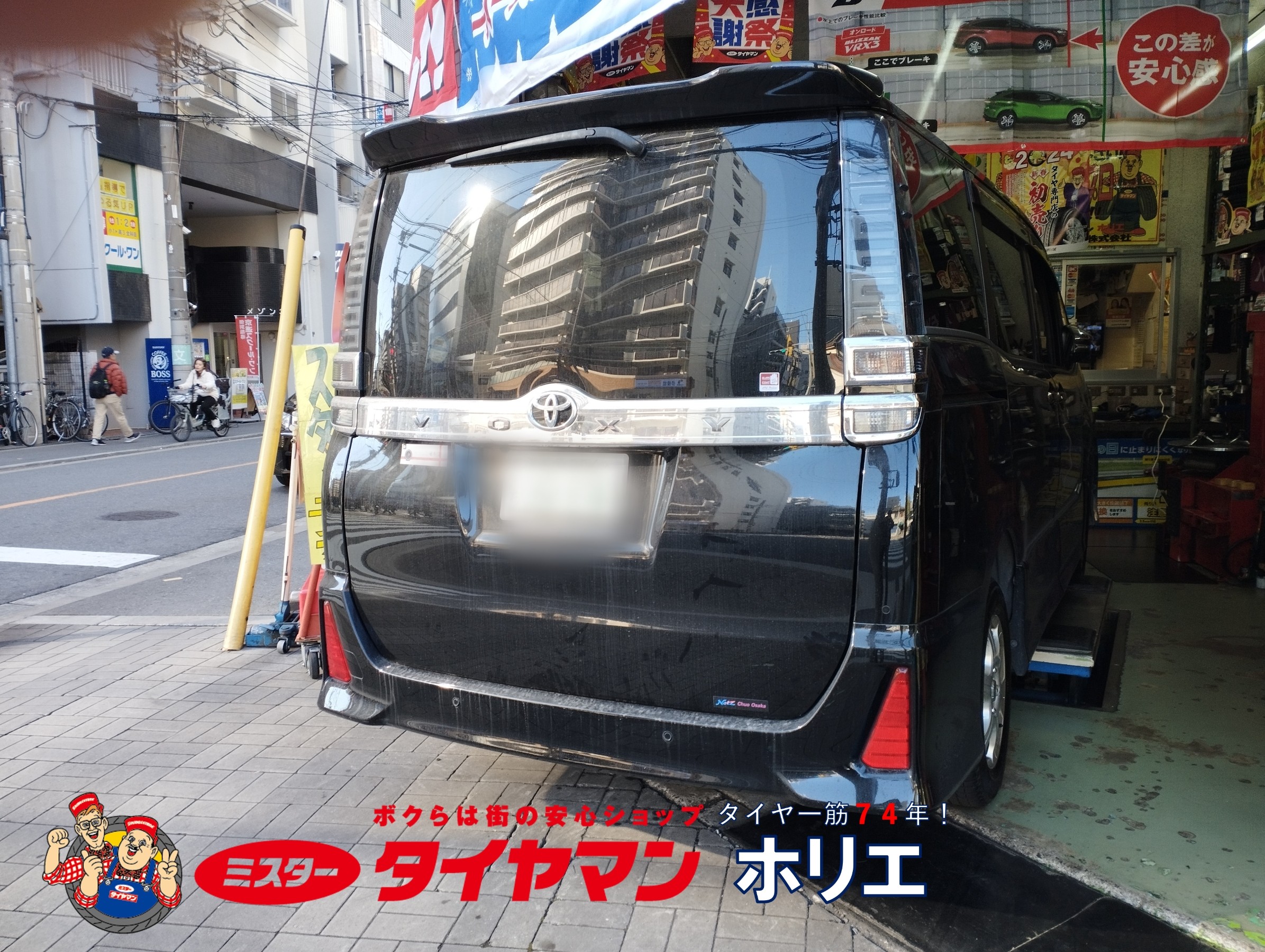 ロードサービスでご来店いただきました。トヨタ ヴォクシーのタイヤ交換です。