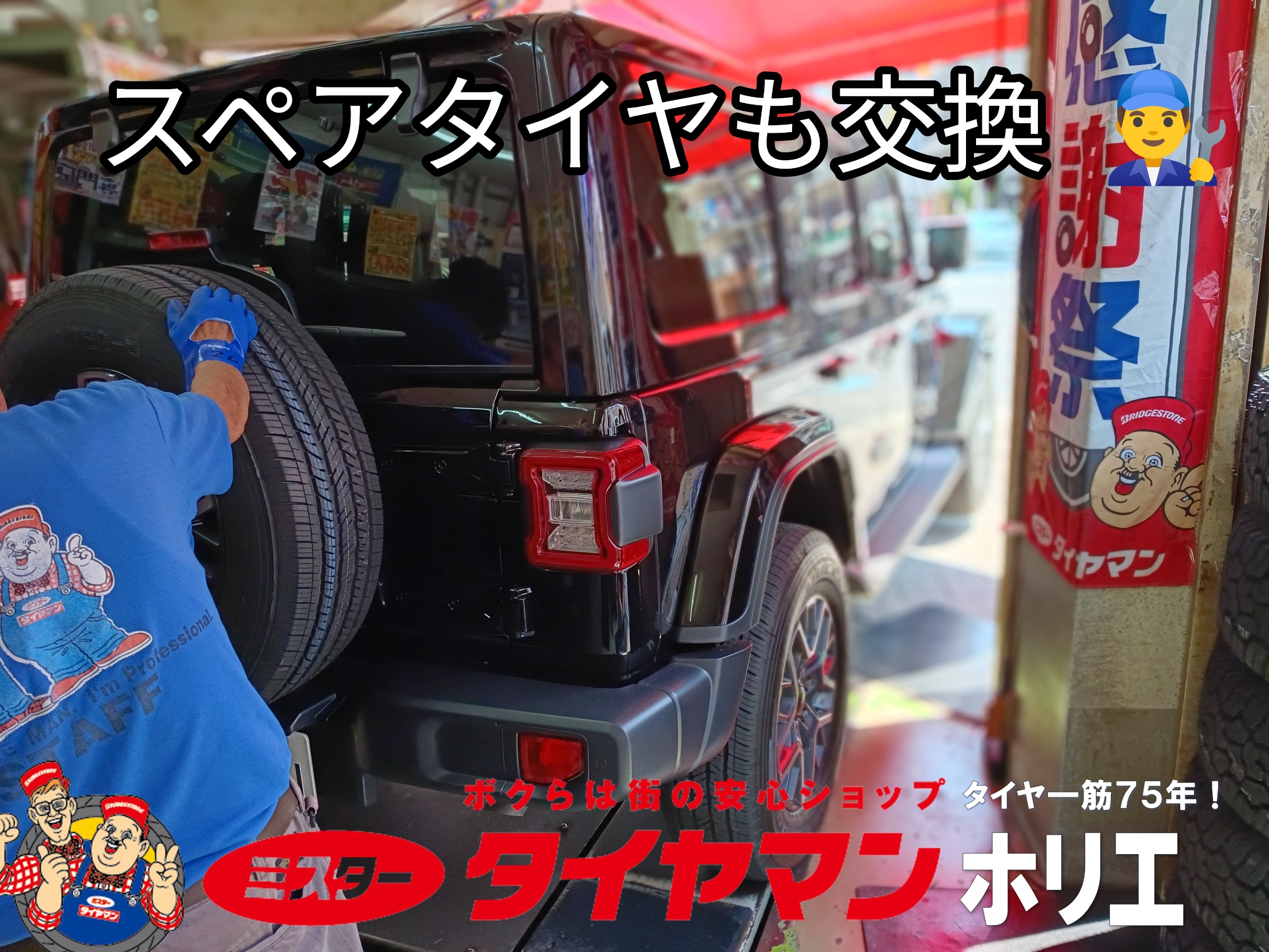 Jeep Wranglerのタイヤ交換です(>ᴗ<)