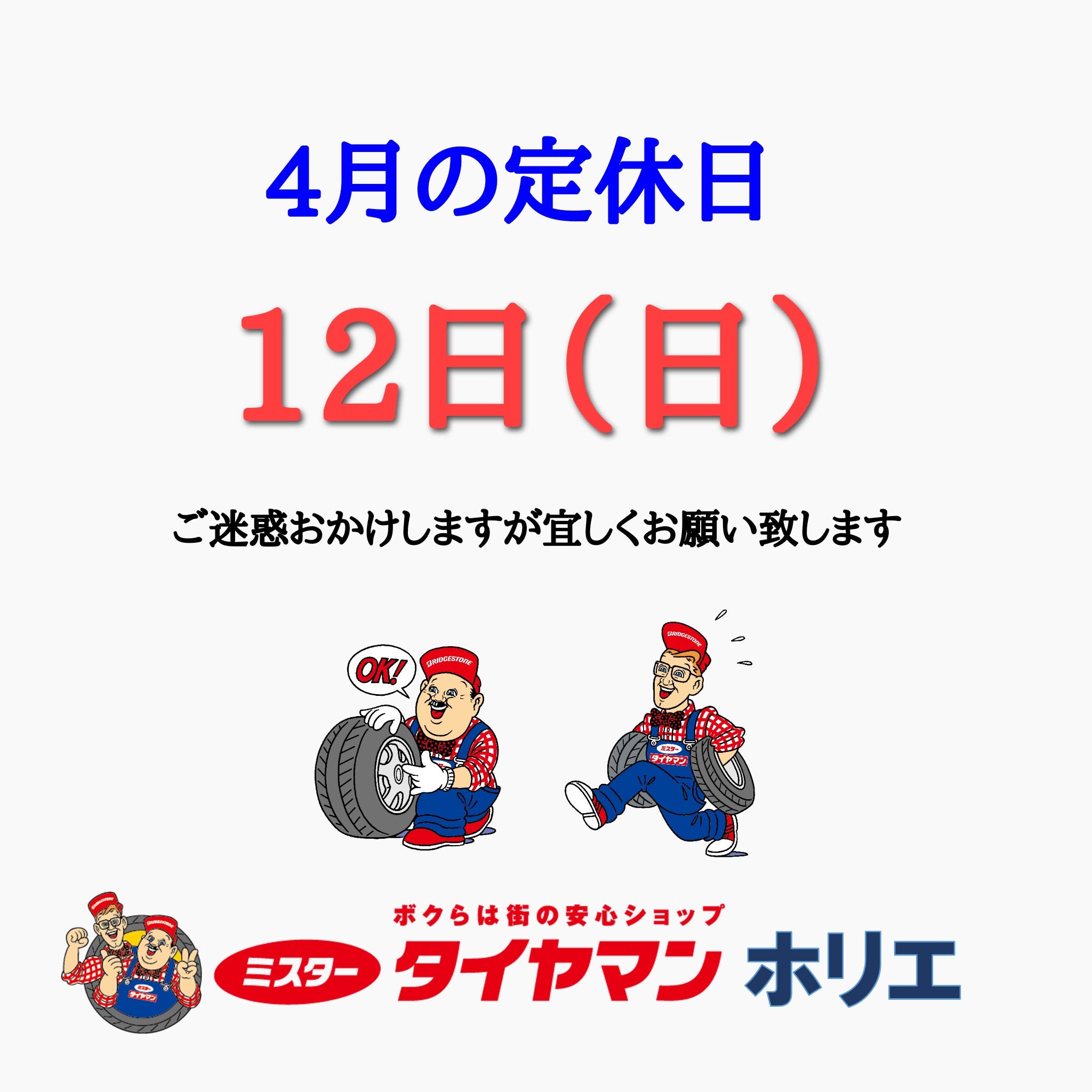 4月の定休日のお知らせです