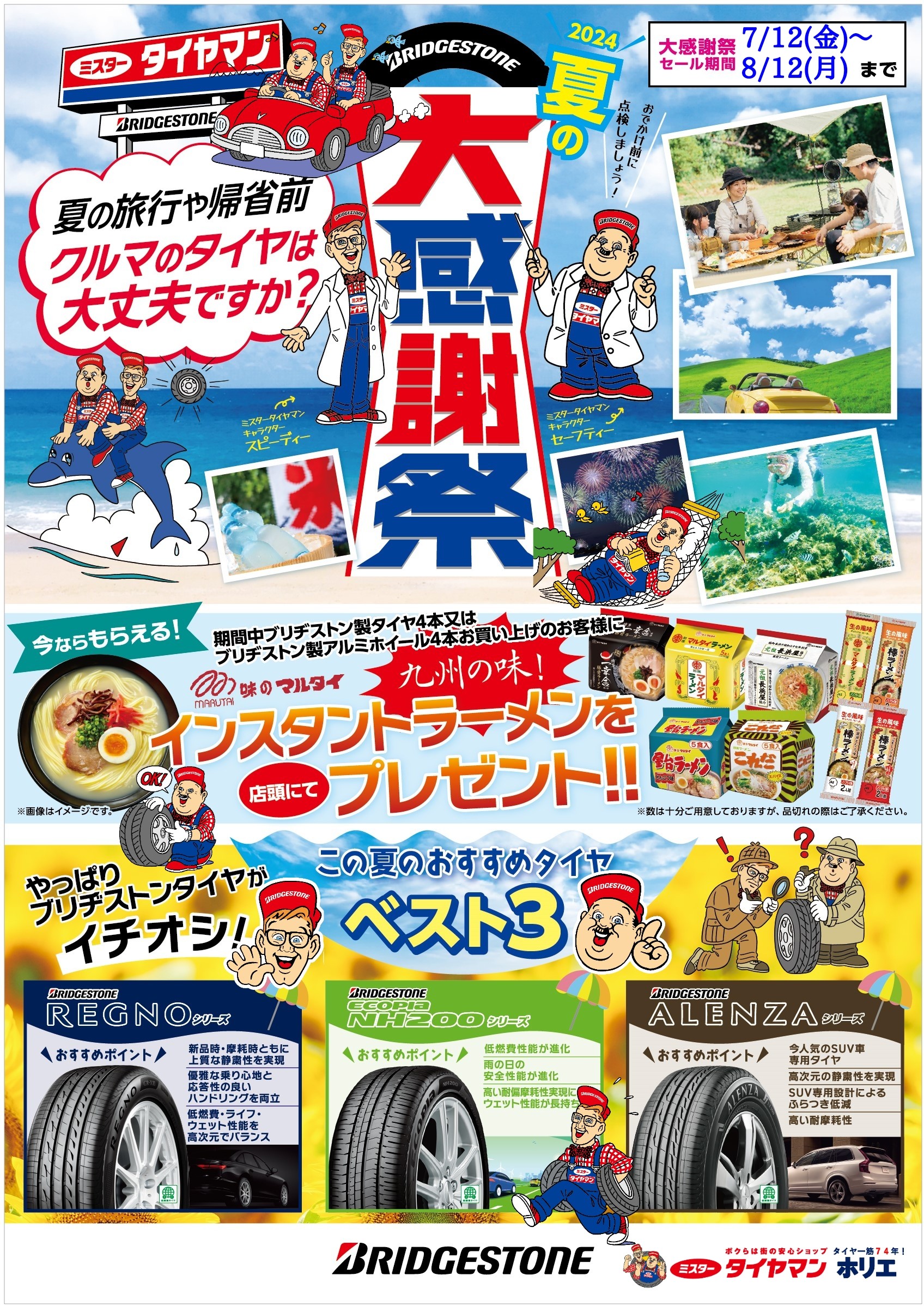 (ノ˶>ᗜ<˵)ノスタッフ日記を更新しました!(ノ˶>ᗜ<˵)ノ 2024年7月21日 スタッフ日記を更新しました! 日産 ノートe-POWER タイヤ交換編です。♪(^ー^)ノ 是非ご覧下さい。٩(ˊᗜˋ*)و ミスタータイヤマン ホリエ 夏の「大感謝祭」開催中です!