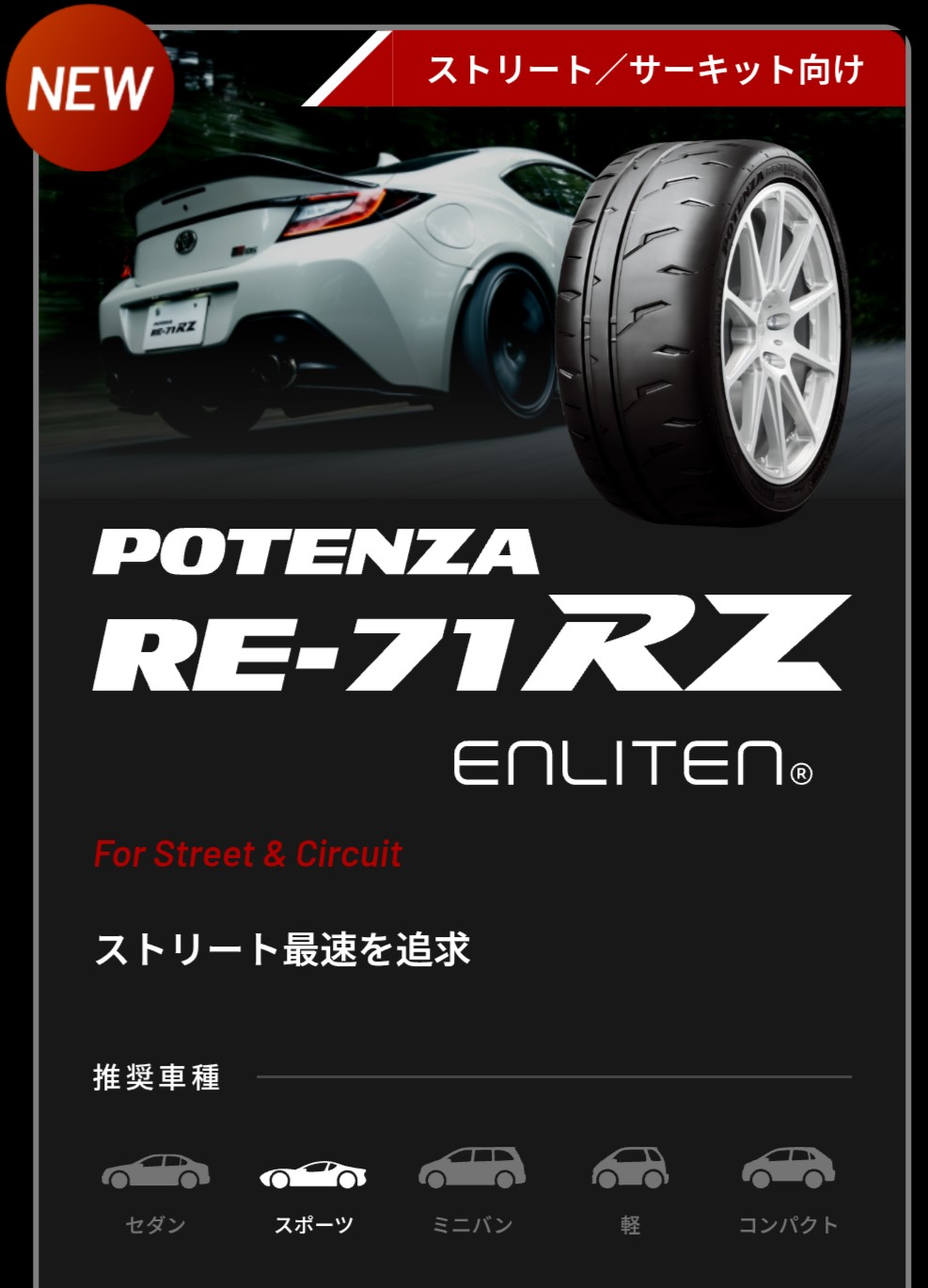 1.2%の最速ラップ短縮が証明する、ストリートラジアル史上最速への飽くなき追求。勝つためのドライグリップが、あなたとクルマの限界を引き上げる。