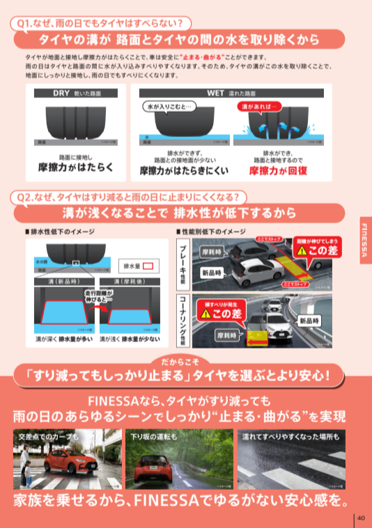 ウェットグリップ向上により、雨の日の運転時、より安全で安心感のあるハンドリング・ブレーキを実現。