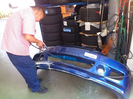 バンパーの割れはFRPでしっかり補強して修理です!
