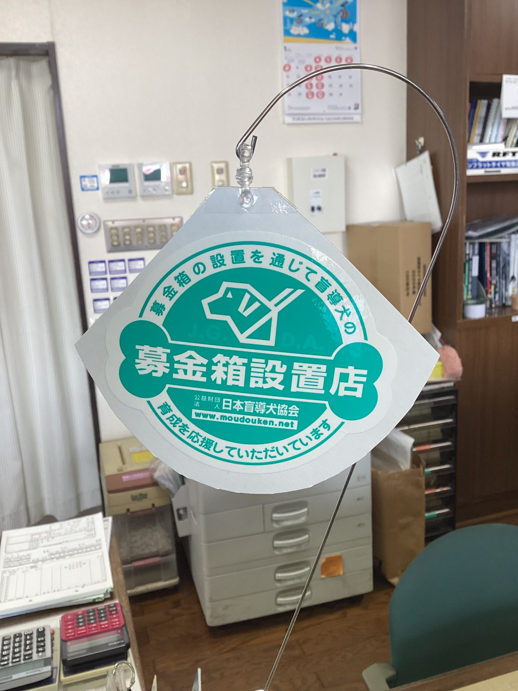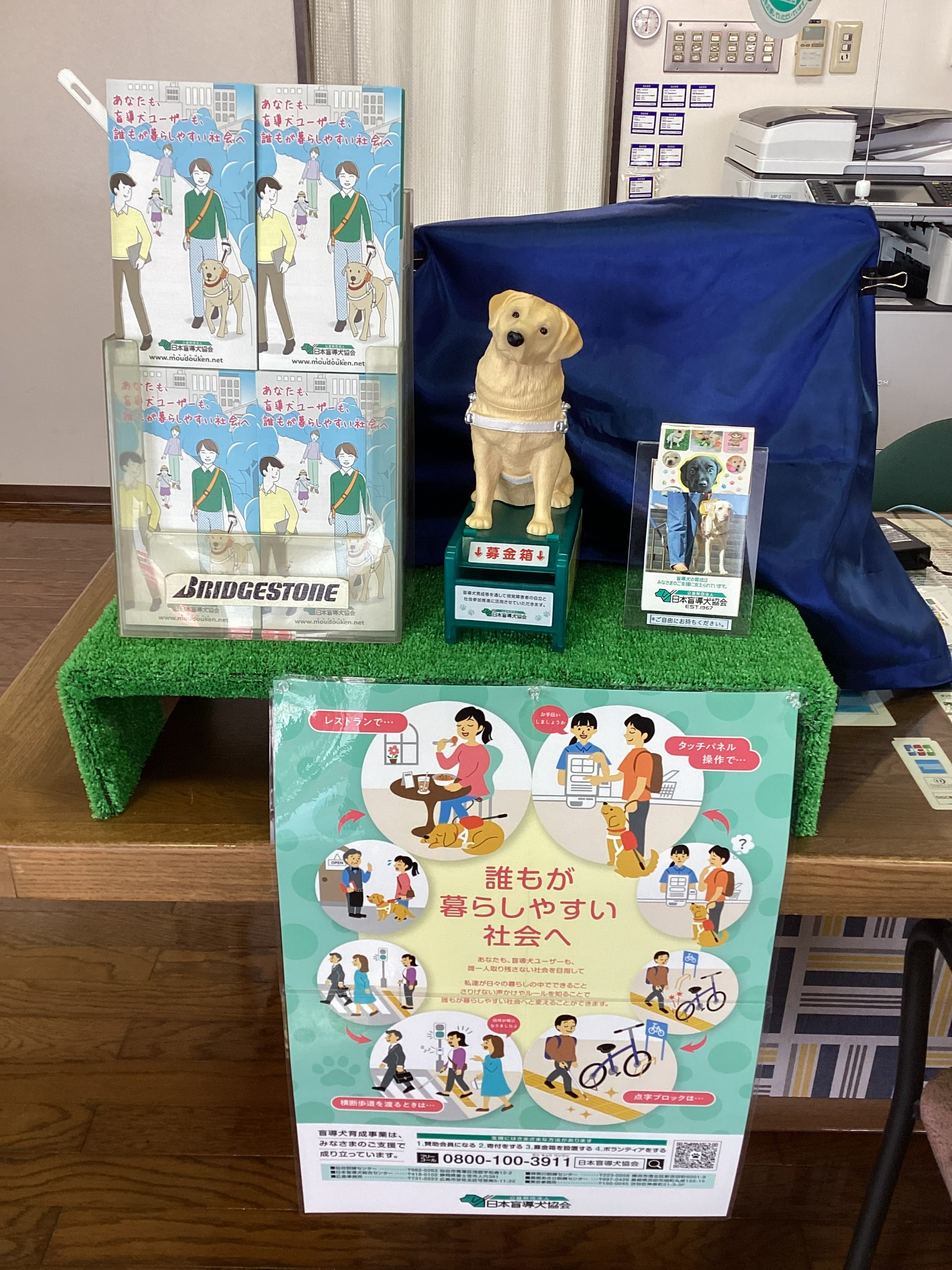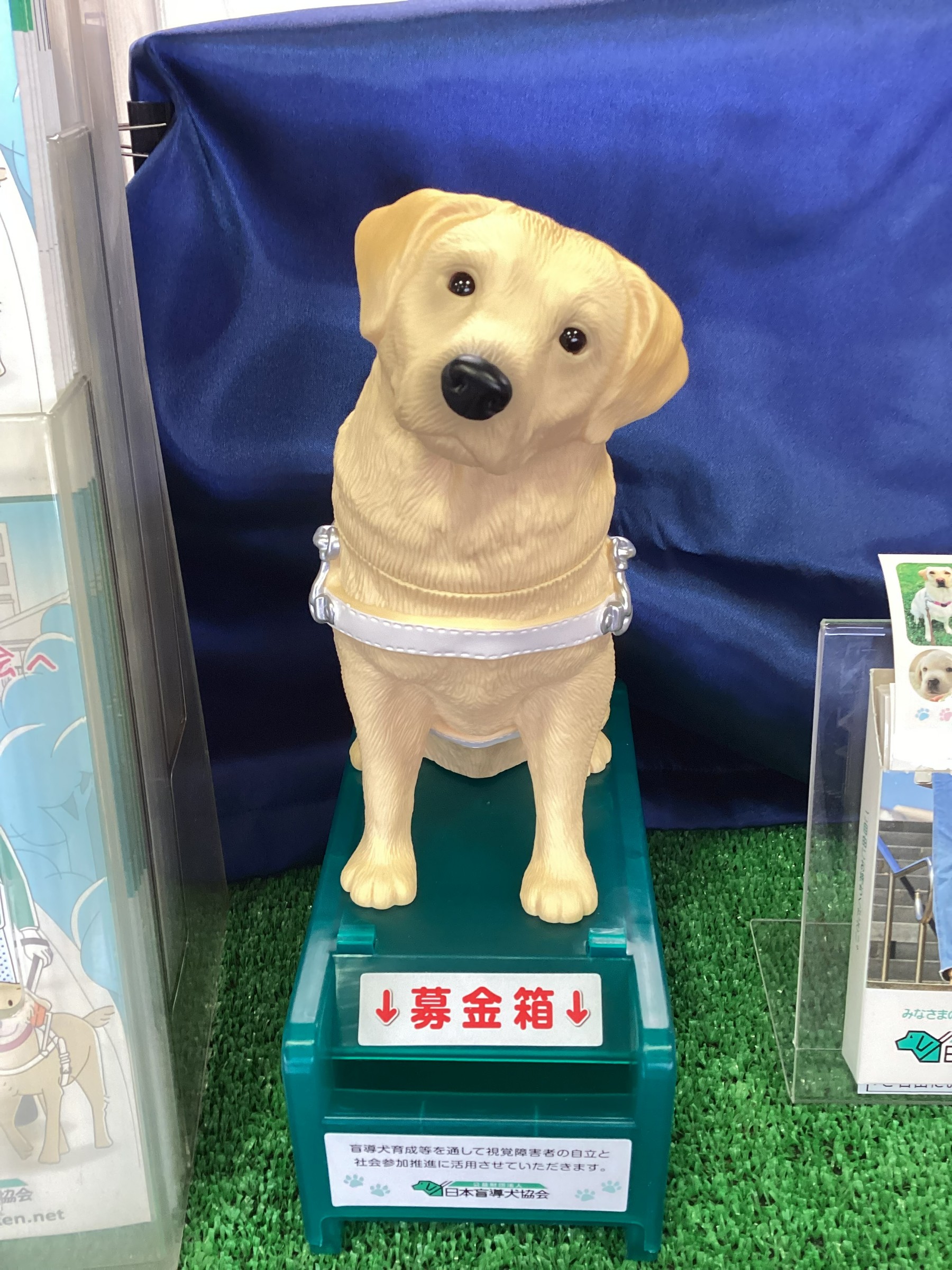 今回、盲導犬育成の為の募金箱を設置しました。