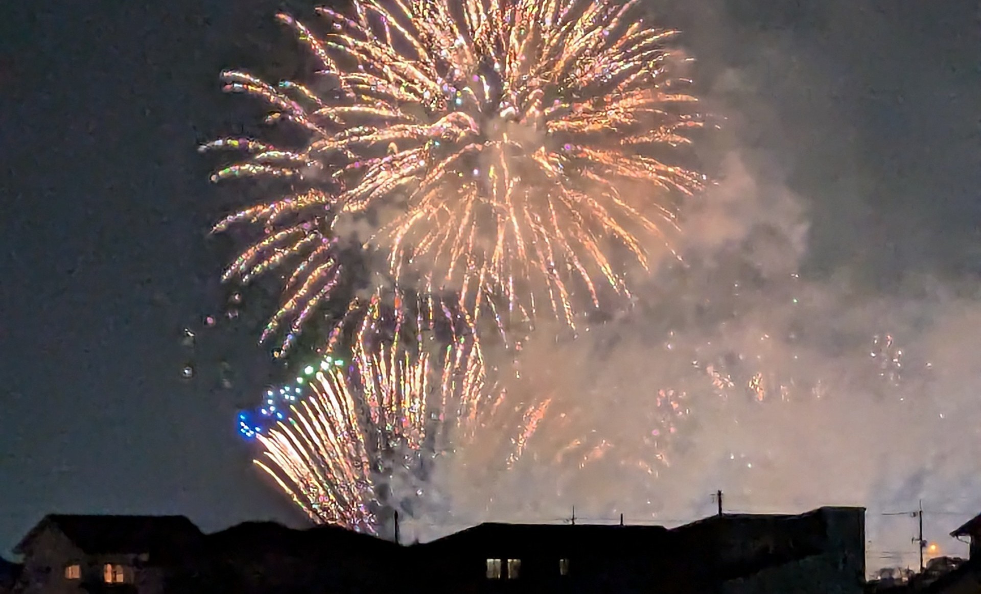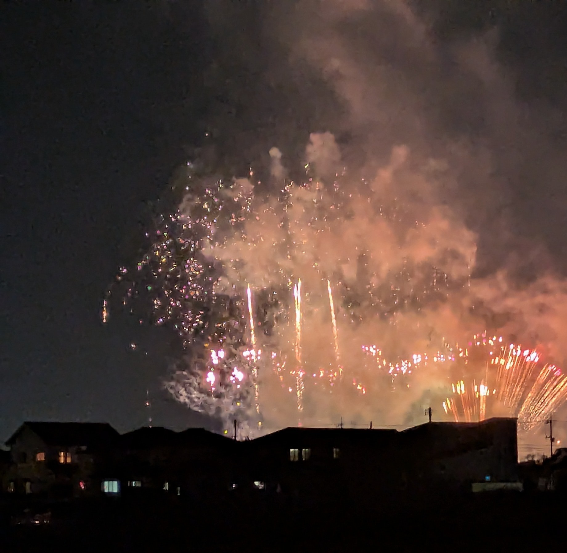見に行かれた方もたくさんいらっしゃると思いますが、会場付近や斐川土手は人も多い為、私は家族と近くで花火を見ました。