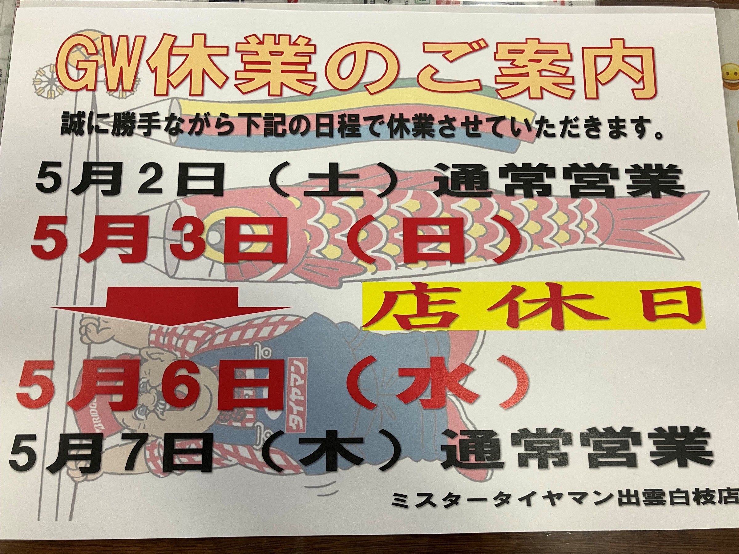 ミスタータイヤマン出雲白枝店をいつもご利用いただきありがとうございます。