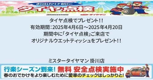 そこで、ミスタータイヤマン掛川店では無料タイヤ点検を実施中です。