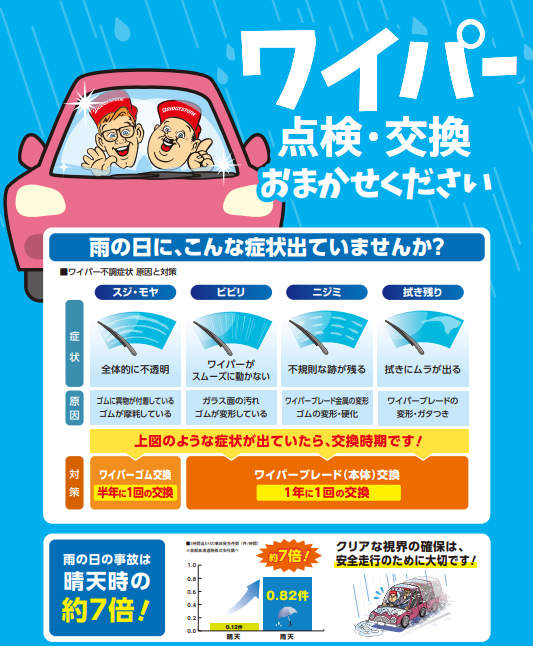 スムーズに動かない、不規則な跡が残る、拭きムラが出る、このような症状がでてきたら早めに交換しましょう。