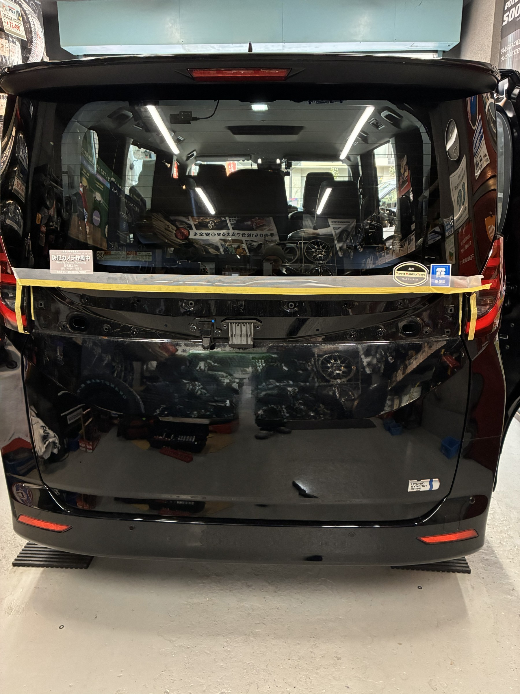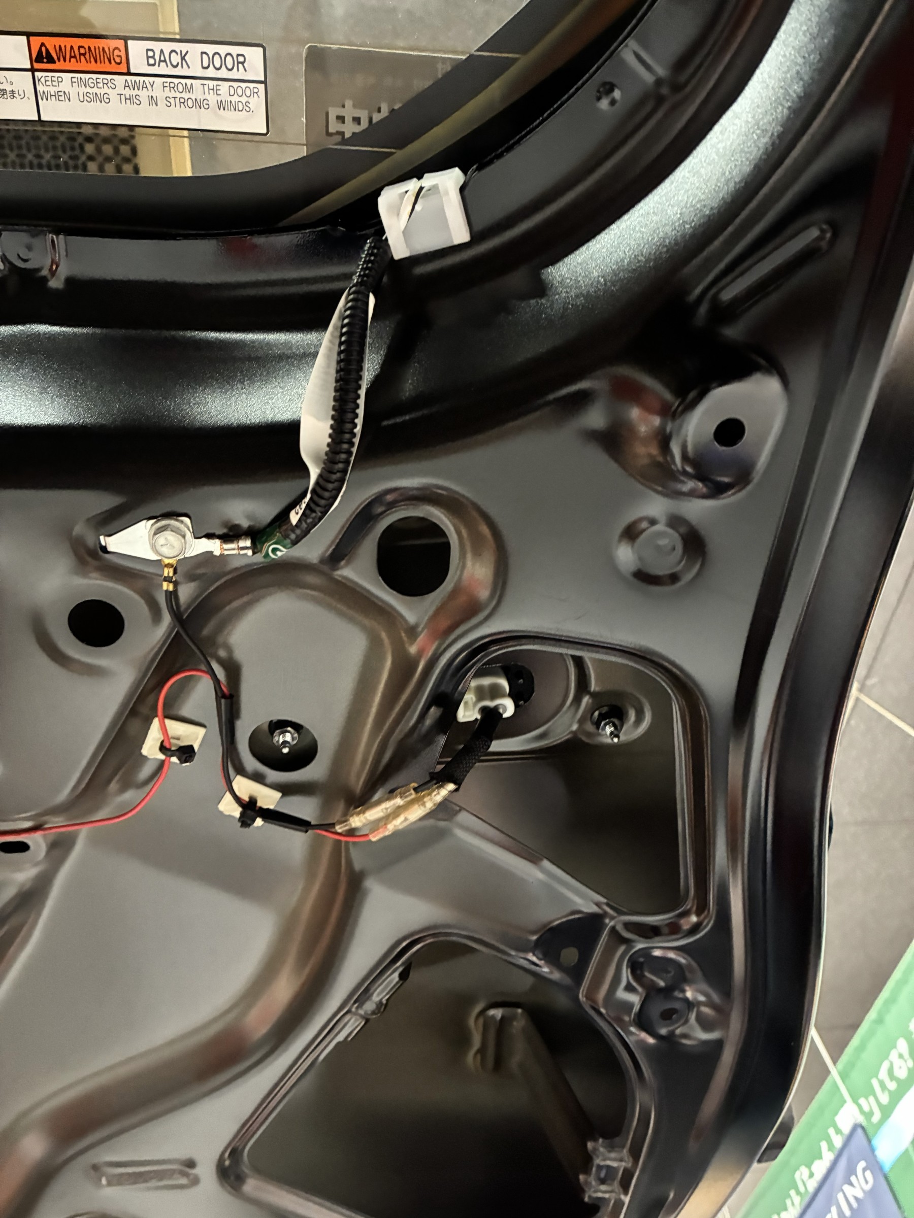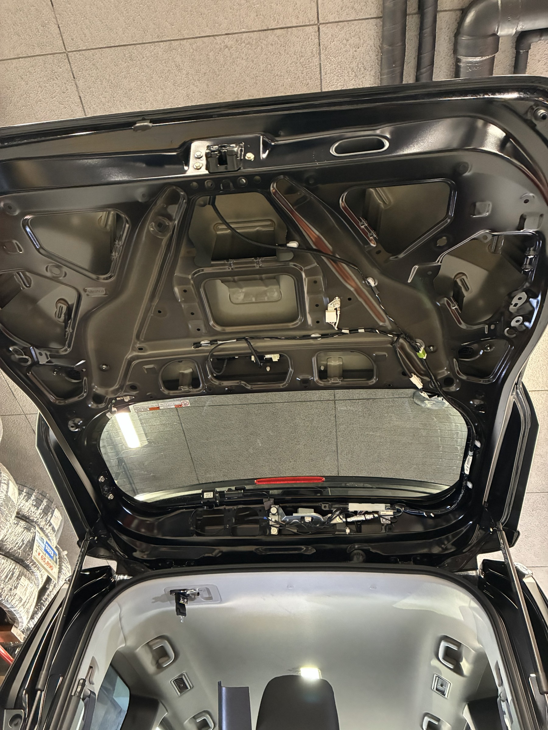 バックドアの内張りを剥がしてネジを外してテールランプの交換と配線の加工を行います。