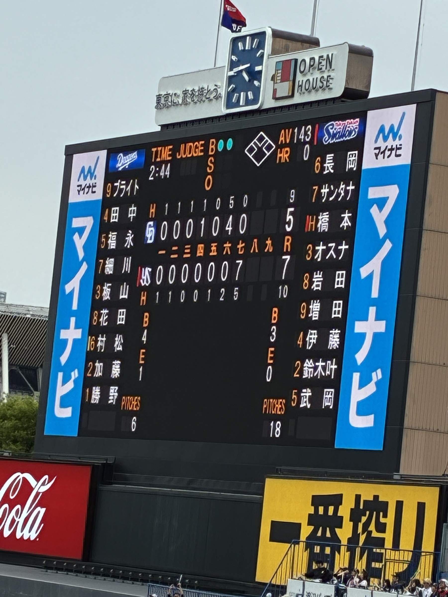 相手先発投手はWBC日本代表の高橋宏斗投手。7回で 5-0 はかなり厳しい展開でしたが・・・