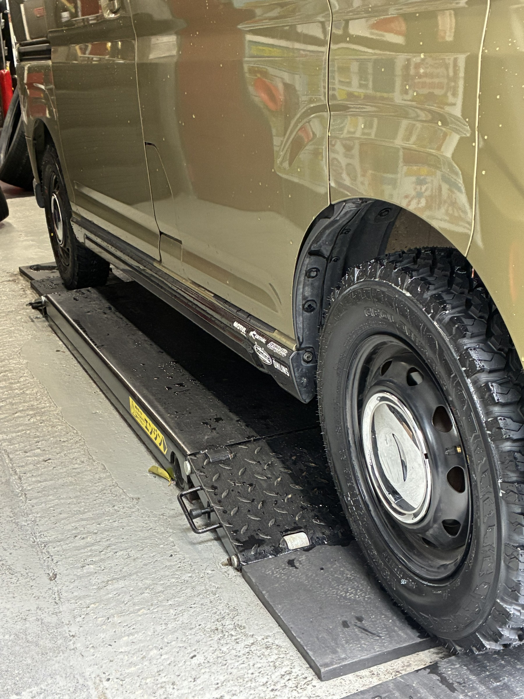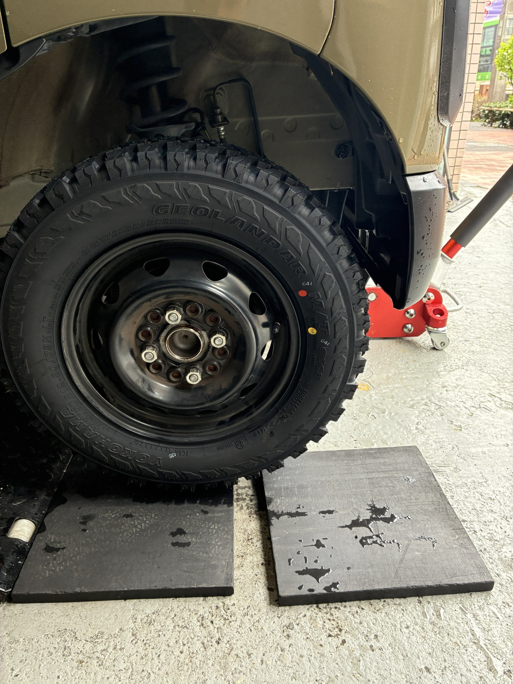 インチUPしてホイールSETも検討しましたが今回は純正サイズのM/Tタイヤを装着しました。