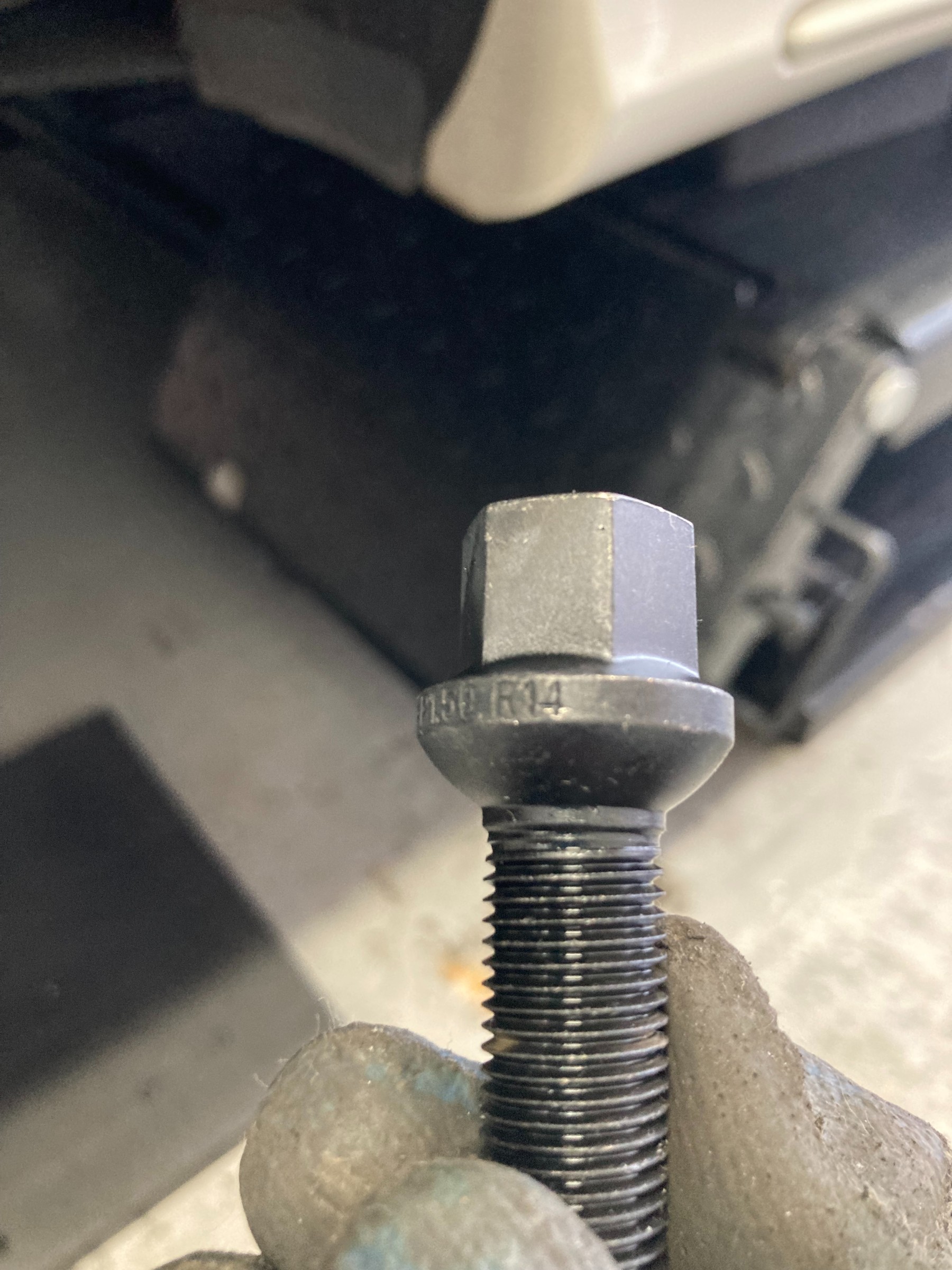 この車両のホイールは14R球面ボルトで装着するのですが60°テーパーで装着されていました。