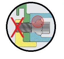 左の図のように球面シートにテーパーボルトを締め付けると緩みの原因にもなり大変危険です。