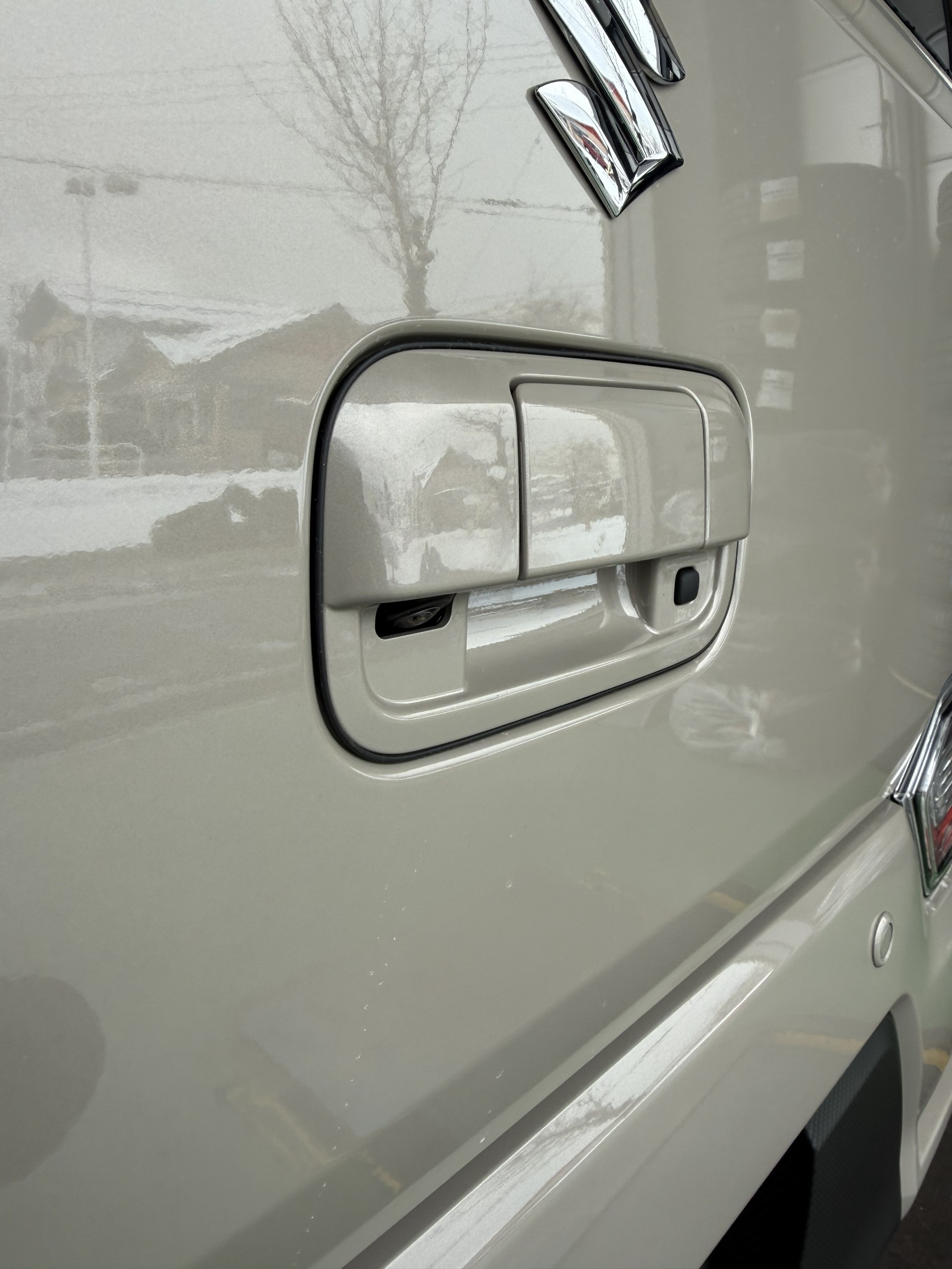 このお車も純正部品でバックカメラが取り付けできるドアハンドルを準備しました。