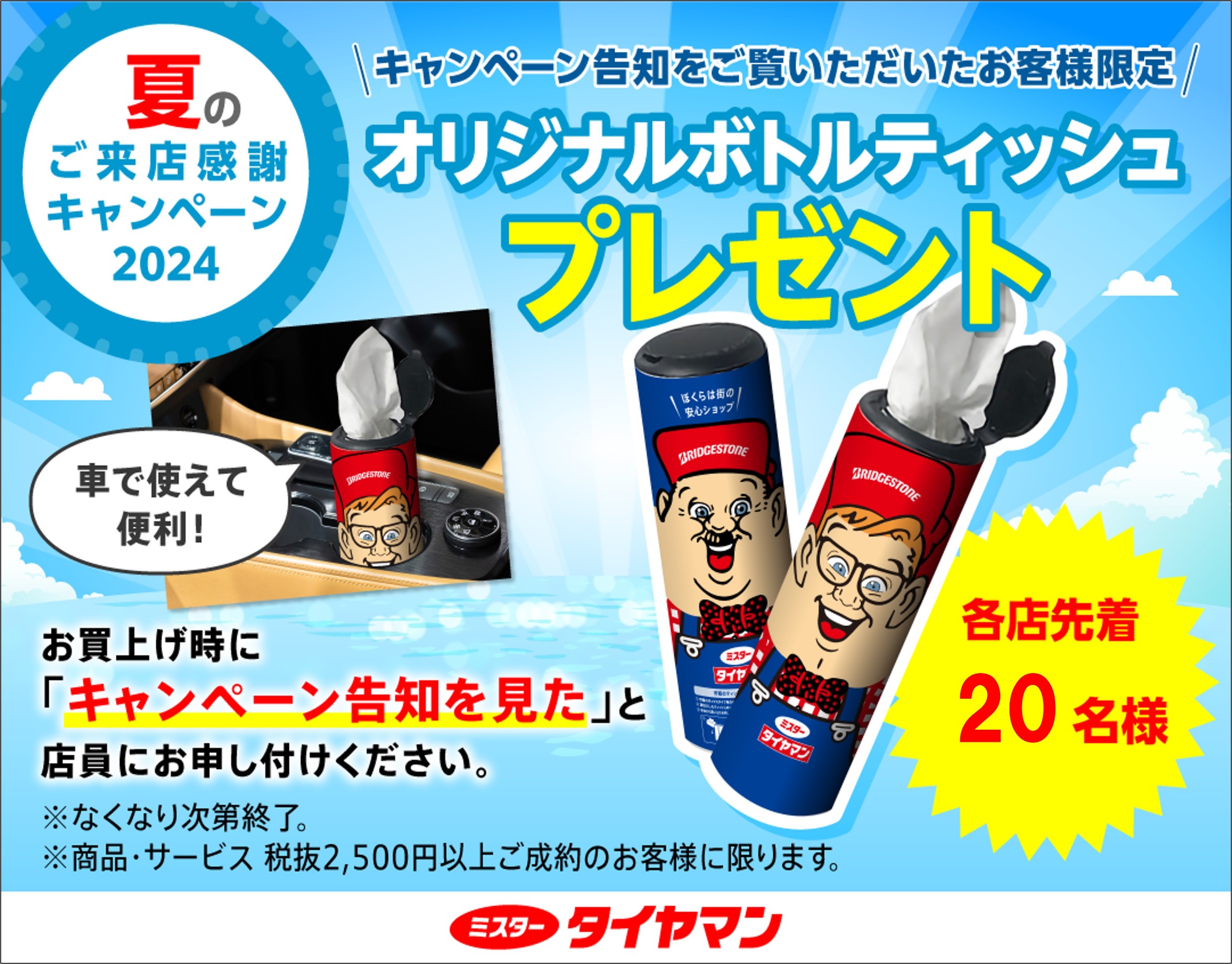 限定「20名様」にオリジナルボトルティッシュ