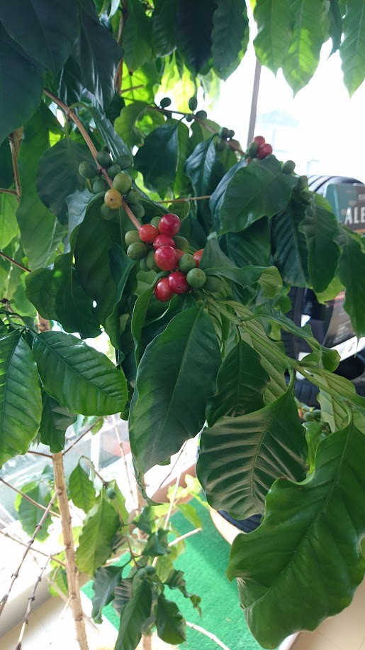 ゆっくりではありますがコーヒーの実が赤く色付いてきましたよ。
