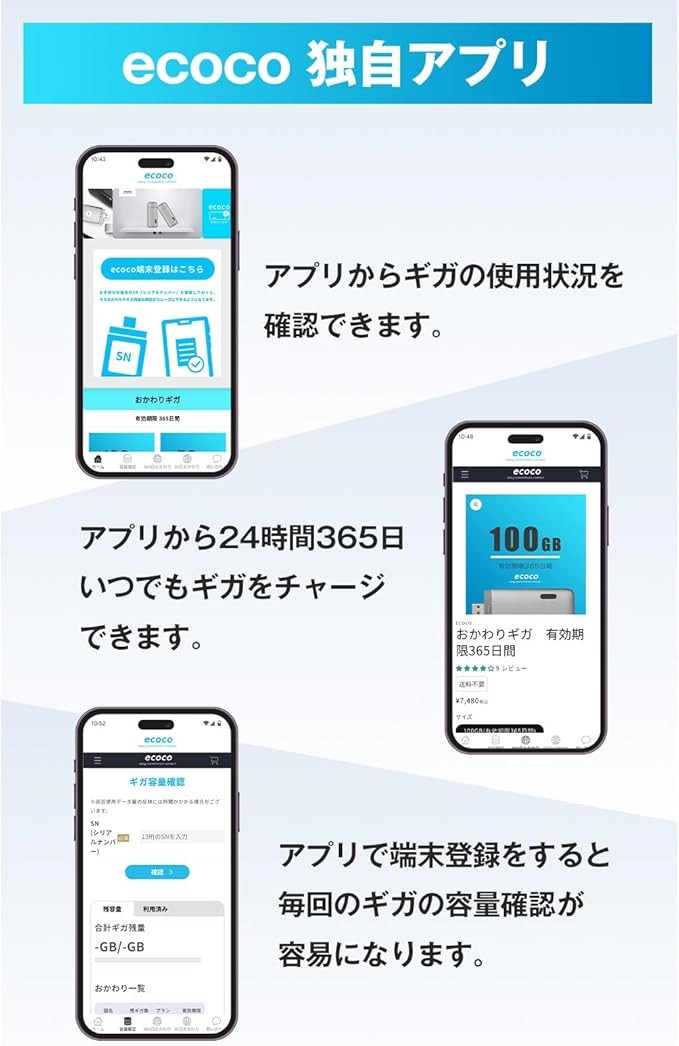 専用アプリで残りのギガ数もチェックできます!