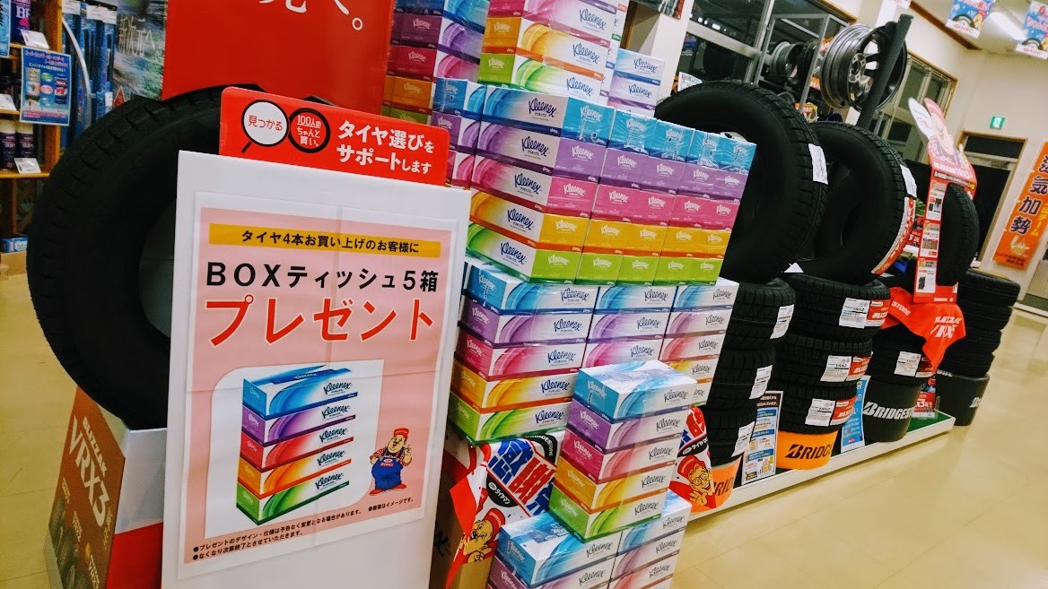 その➀ タイヤ4本購入でもれなくBOXティッシュ5箱プレゼント