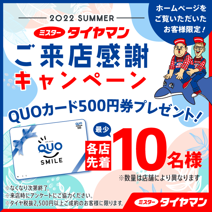 当ホームページご覧の方限定! 「QUOカード500円券」プレゼントキャンペーン同時開催!!