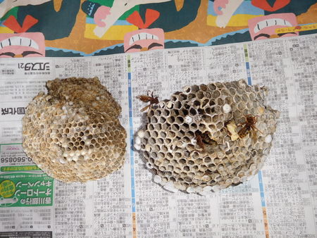 しかも巣が2つも!!!幼虫がたくさんいて、気持ち悪かったです。