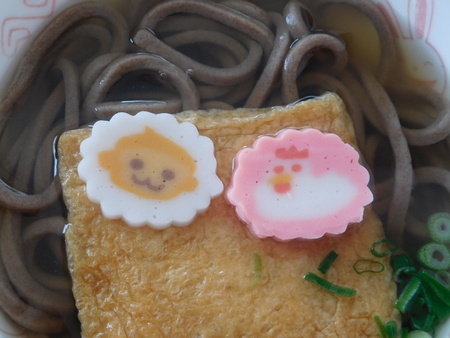 写真は、お正月に作ったおそばにおうどんです。申から鳥なので、申とにわとりのかまぼこ