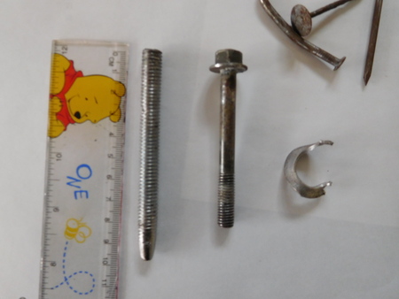 他にも直径1.5センチ、10センチは長さのあるボルトなんかがトラックのタイヤに突き刺さって