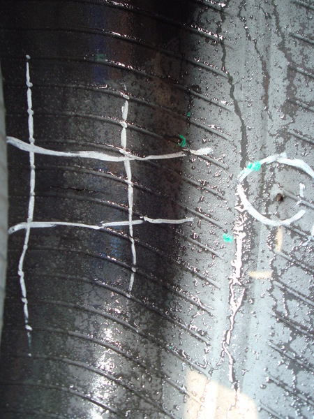 エア不足の為、タイヤのサイドウォールの内側を大きく切っていました(四角で囲っている部分)。