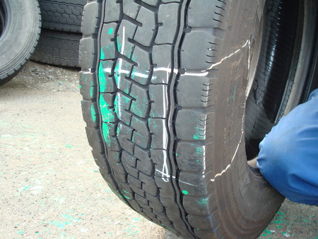 先週、25tに乗車されているお客様が来店されたのですが、釘を踏んで(丸印部分)