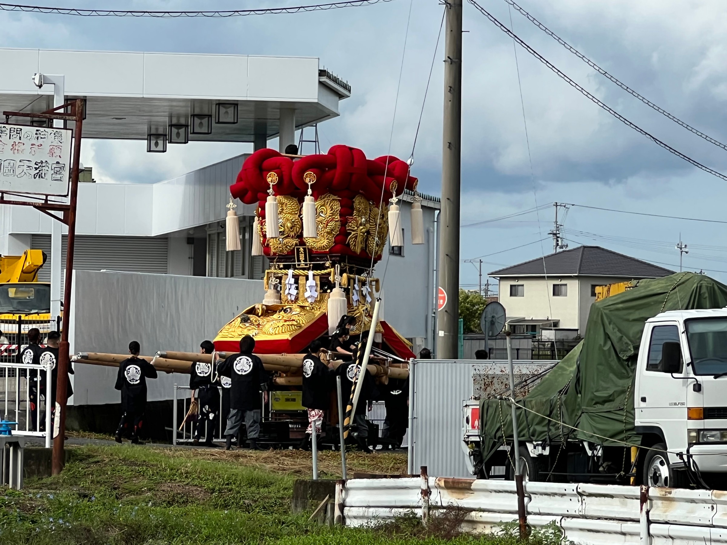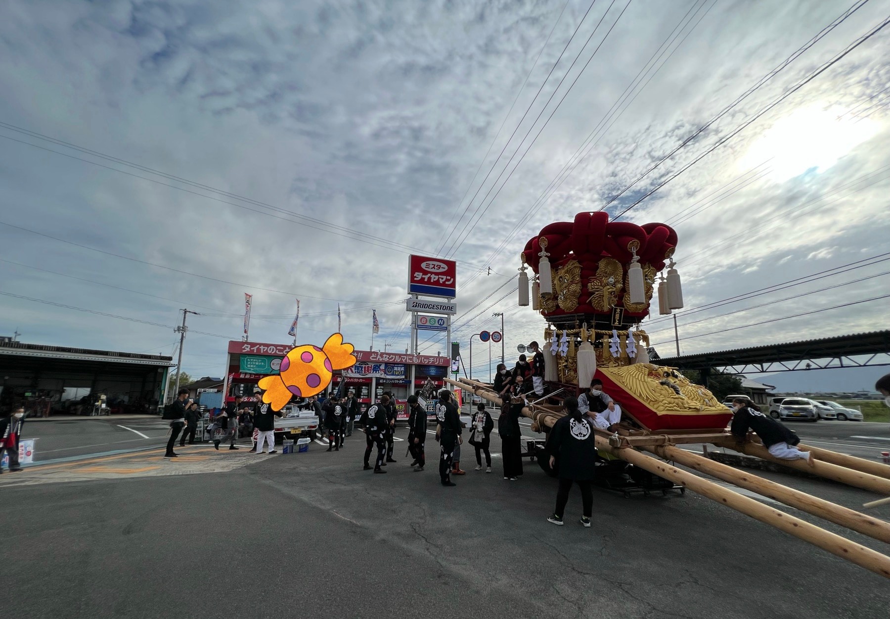 秋の豊作に感謝して、田んぼの中をちょうさが練り歩きます。