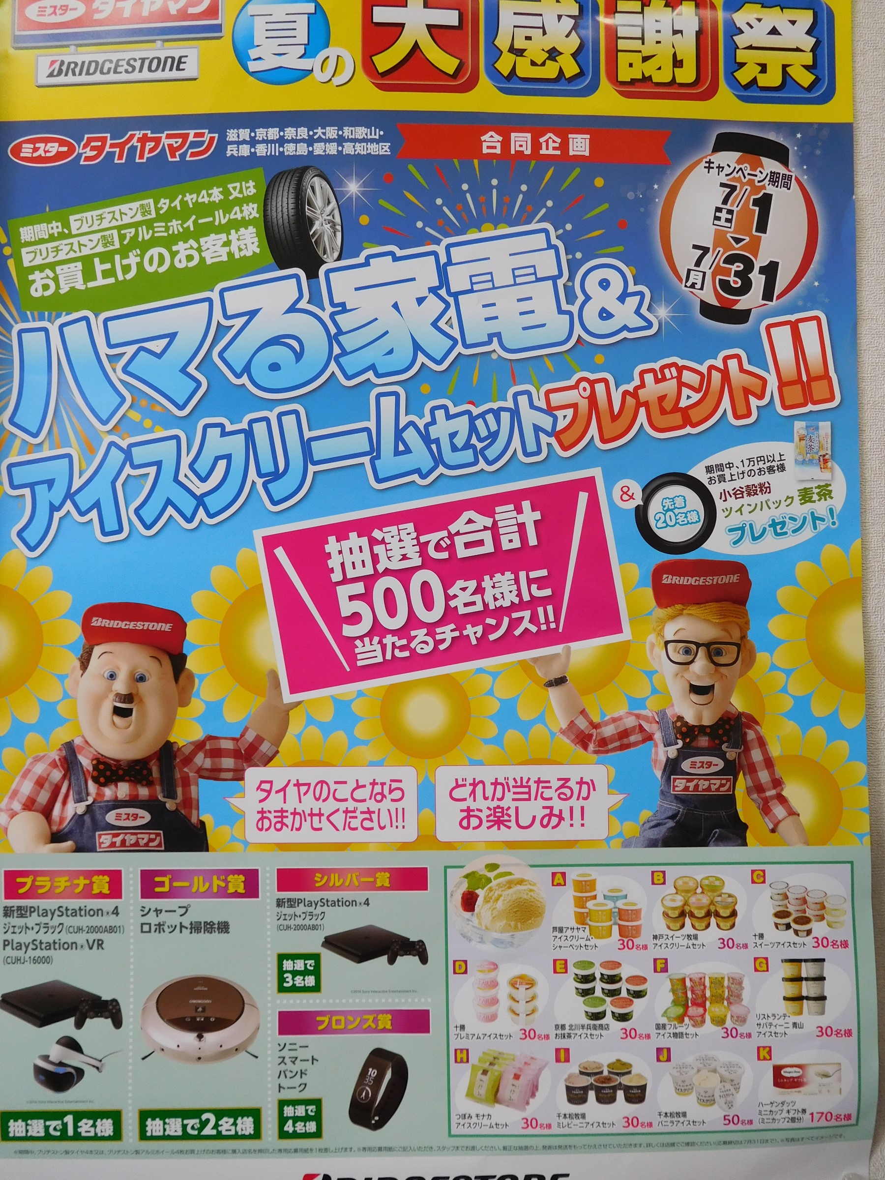 期間中、タイヤ及びホイールを4本お買い上げの方には、抽選で500名様に家電&アイスクリームセット