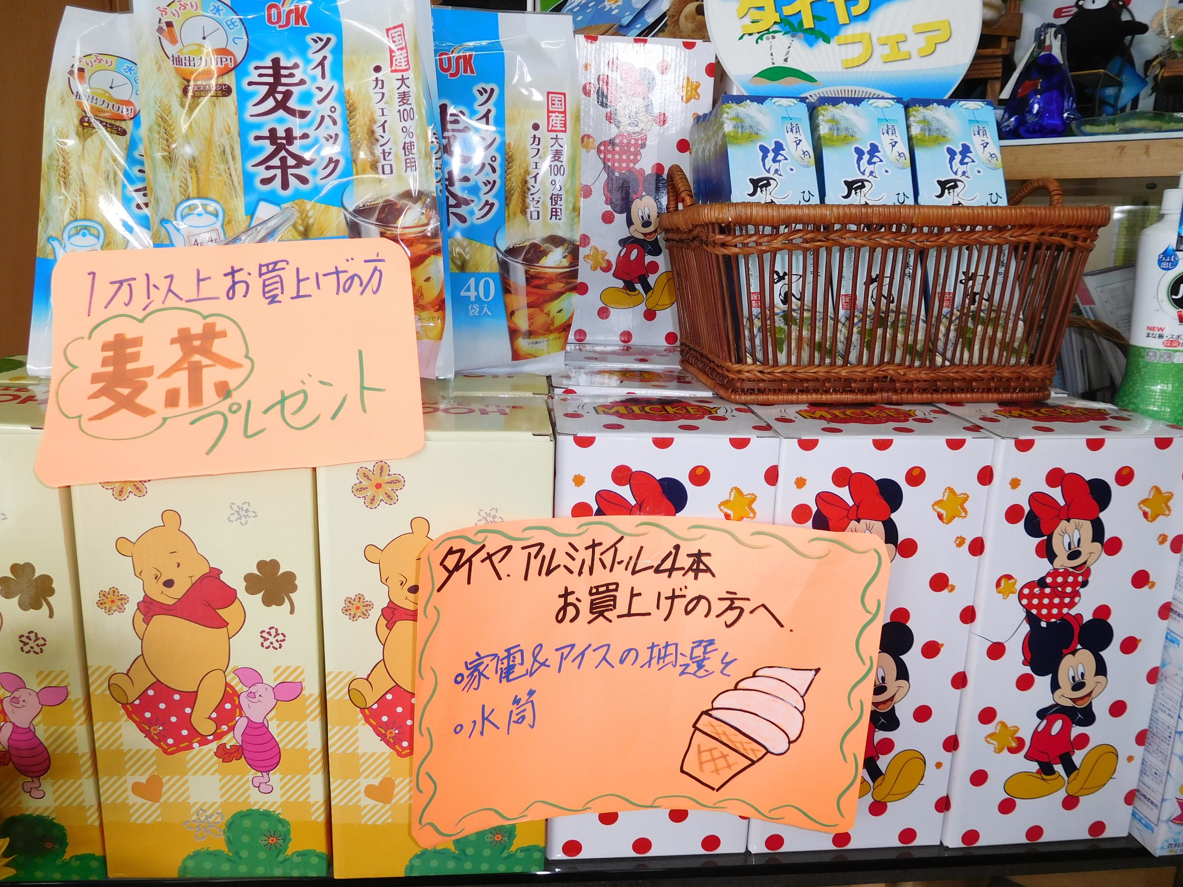 が当たります!また、期間中、1万円以上お買い上げの方には美味しい麦茶をプレゼント致します。