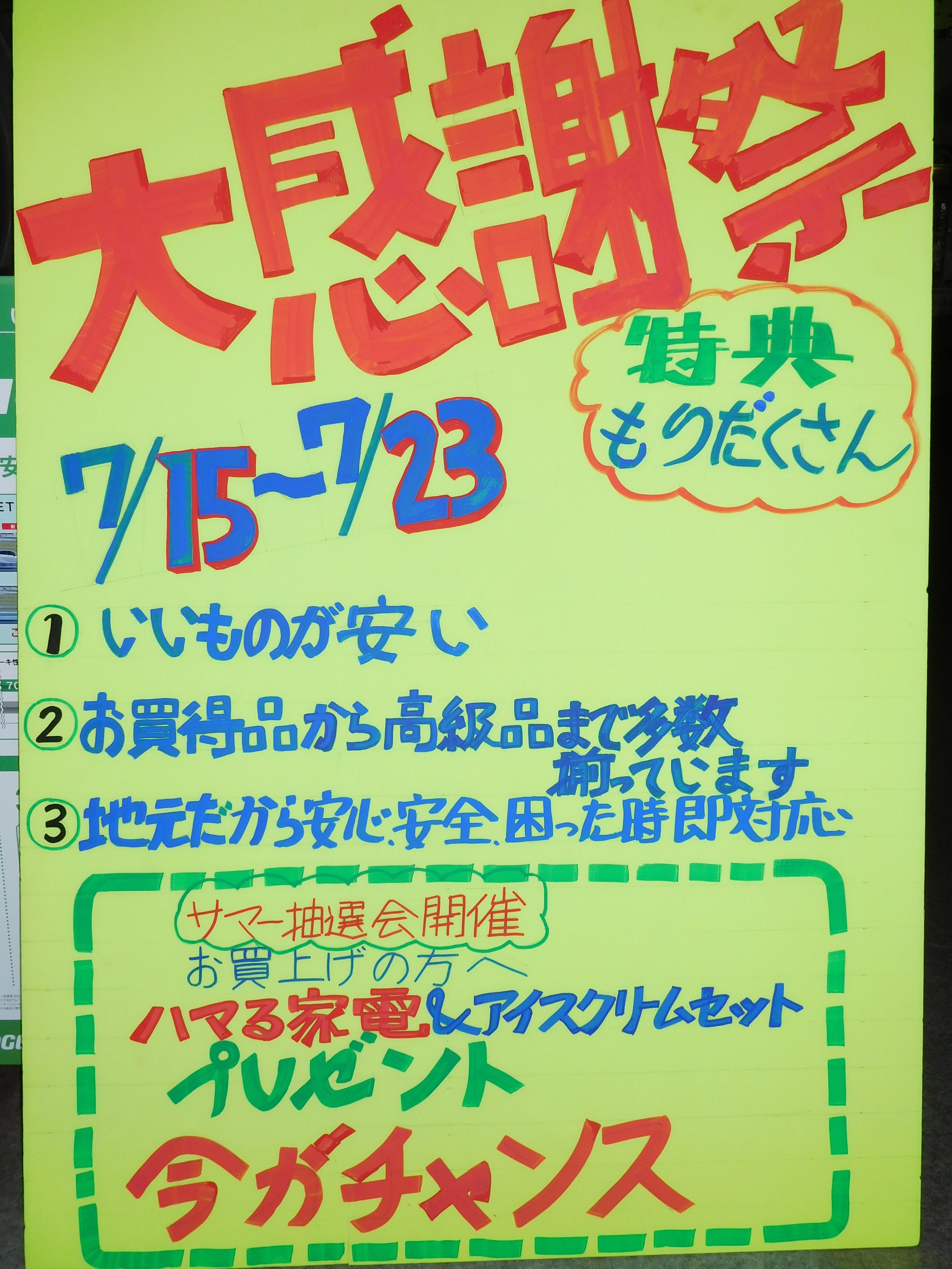 7月15日~7月23日までの期間、<夏の大感謝祭>が始まります!