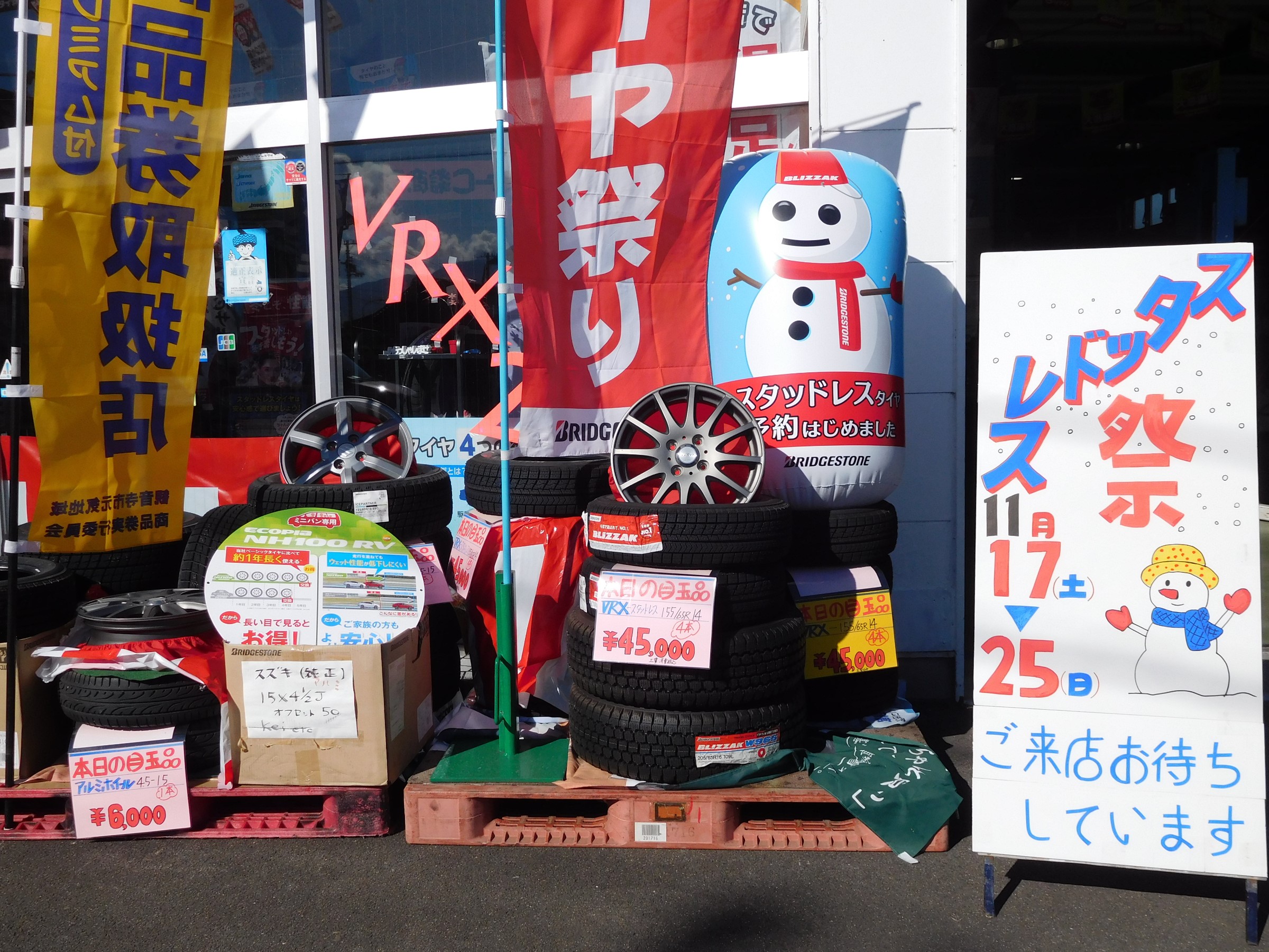 期間中、ブリヂストン製のタイヤが大変お安くなっております!