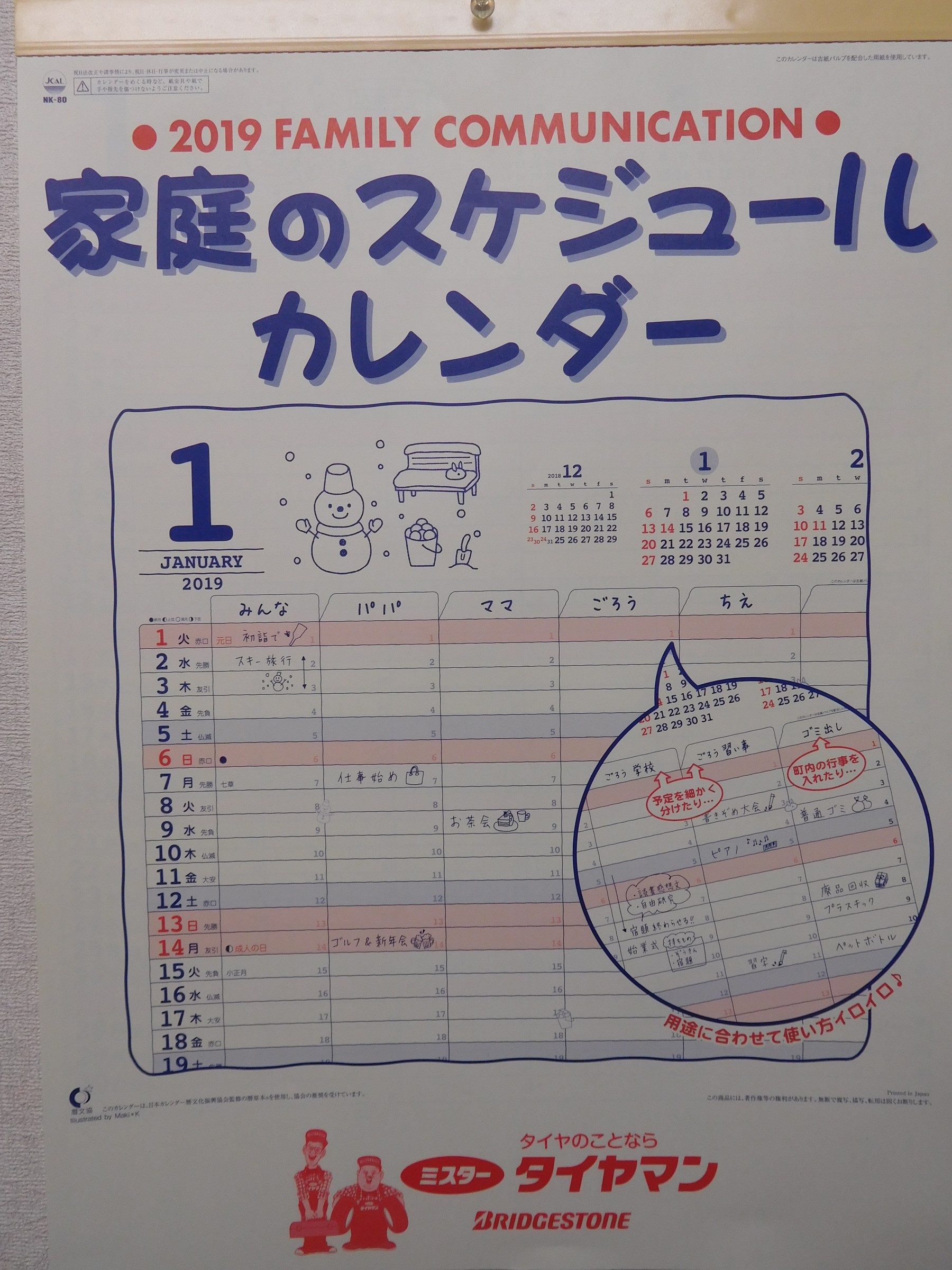 更に更に、期間中1万円以上お買い上げのお客様先着20名様に「ミスタータイヤマン家族催事カレンダー」