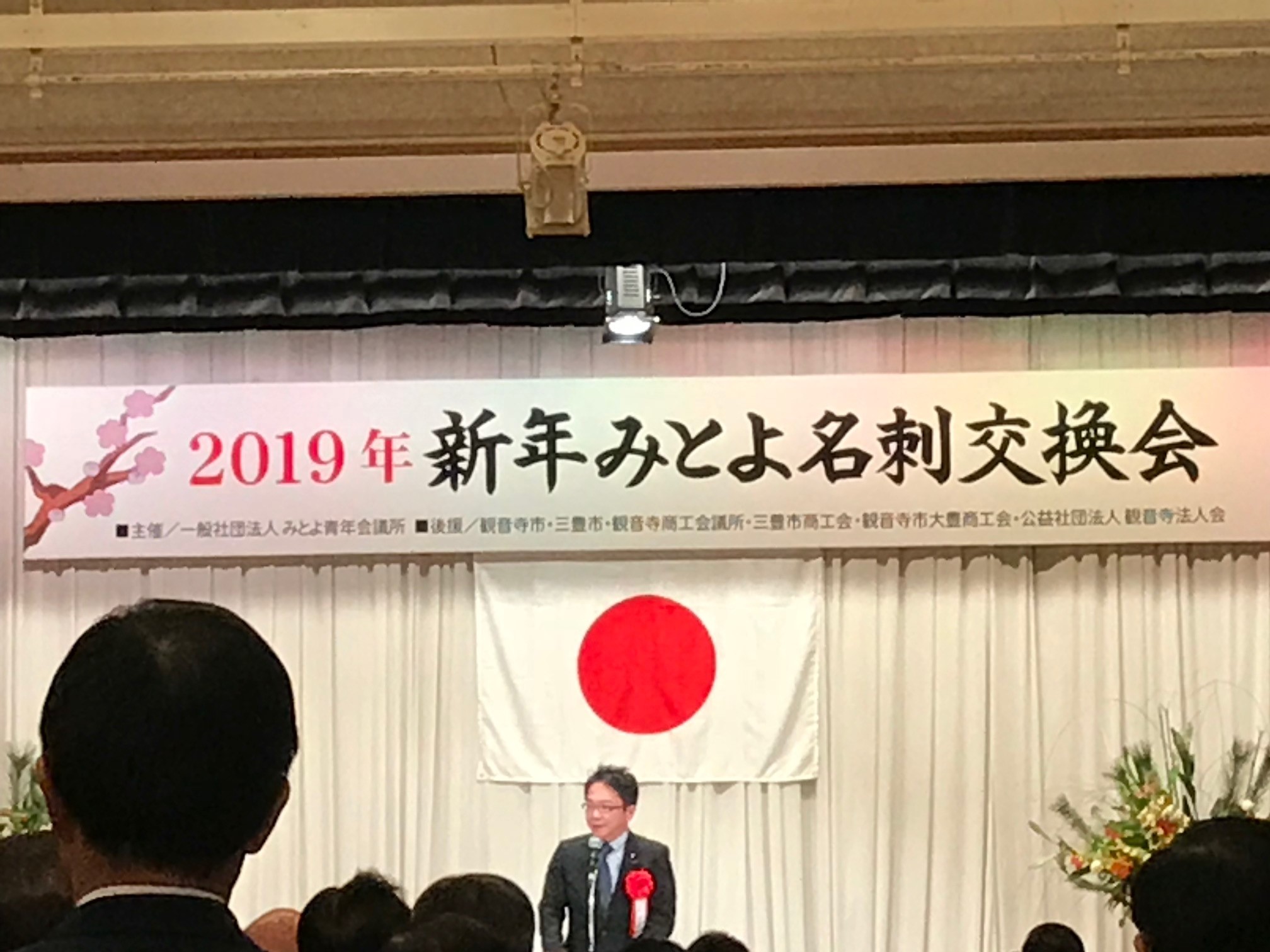 <スタッフ日記>更新しました~2019年"新年みとよ名刺交換会"に行って参りました~ 2019年1月7日 私は元旦に、"新年みとよ名刺交換会"に初参加させて頂きました! ご来賓の方々の中には国会議員の大野敬太郎氏はじめ、三宅伸吾氏、山本博司氏他、 県議会議員の皆様がいらっしゃいました。 最初に観音寺市長の白川晴司氏の新年のご挨拶から始まり、三豊市市長の山下昭史氏、 大野敬太郎氏、山本博司氏、三宅伸吾氏の5名の方々がご挨拶をされていました。 ⇒<スタッフ日記>に続く