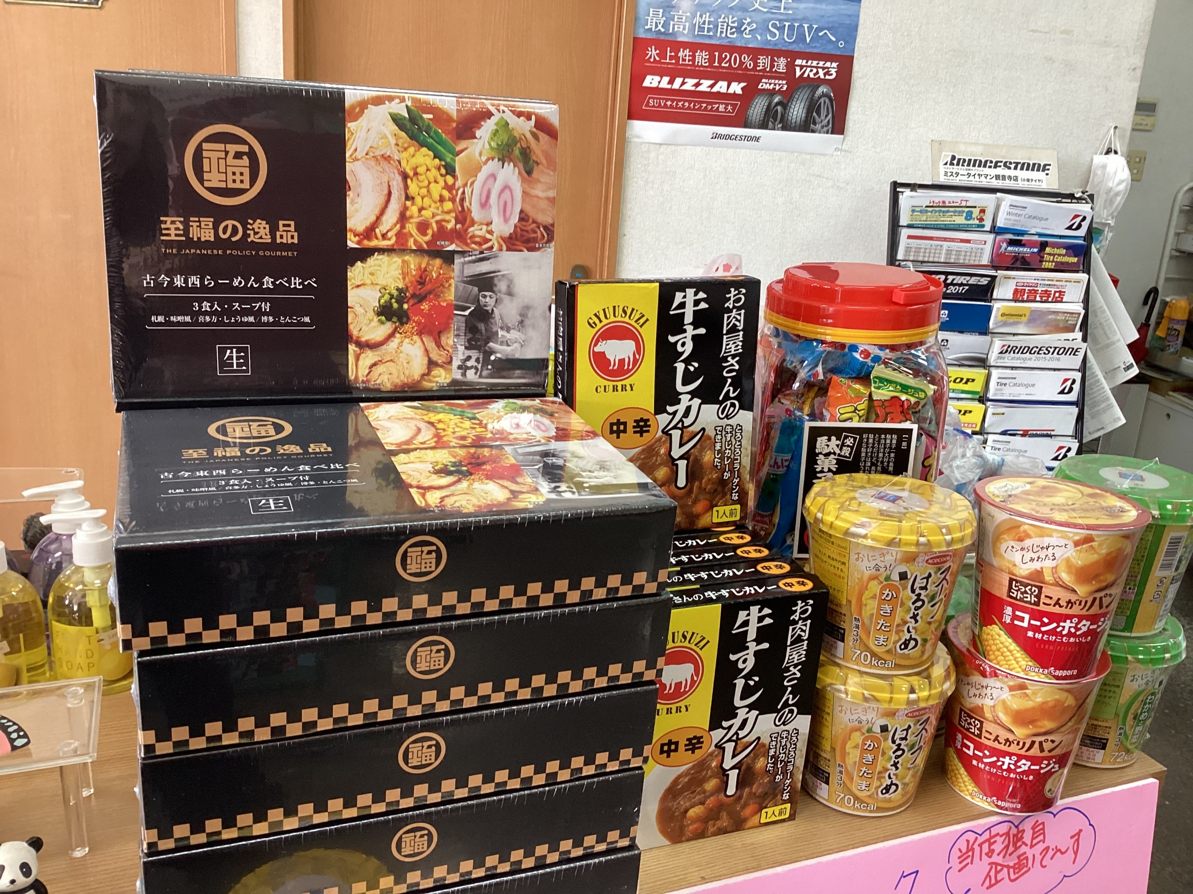 「ラーメン3食セット」や、「お肉屋さんの牛すじカレー」を当店のみ、進呈中です。