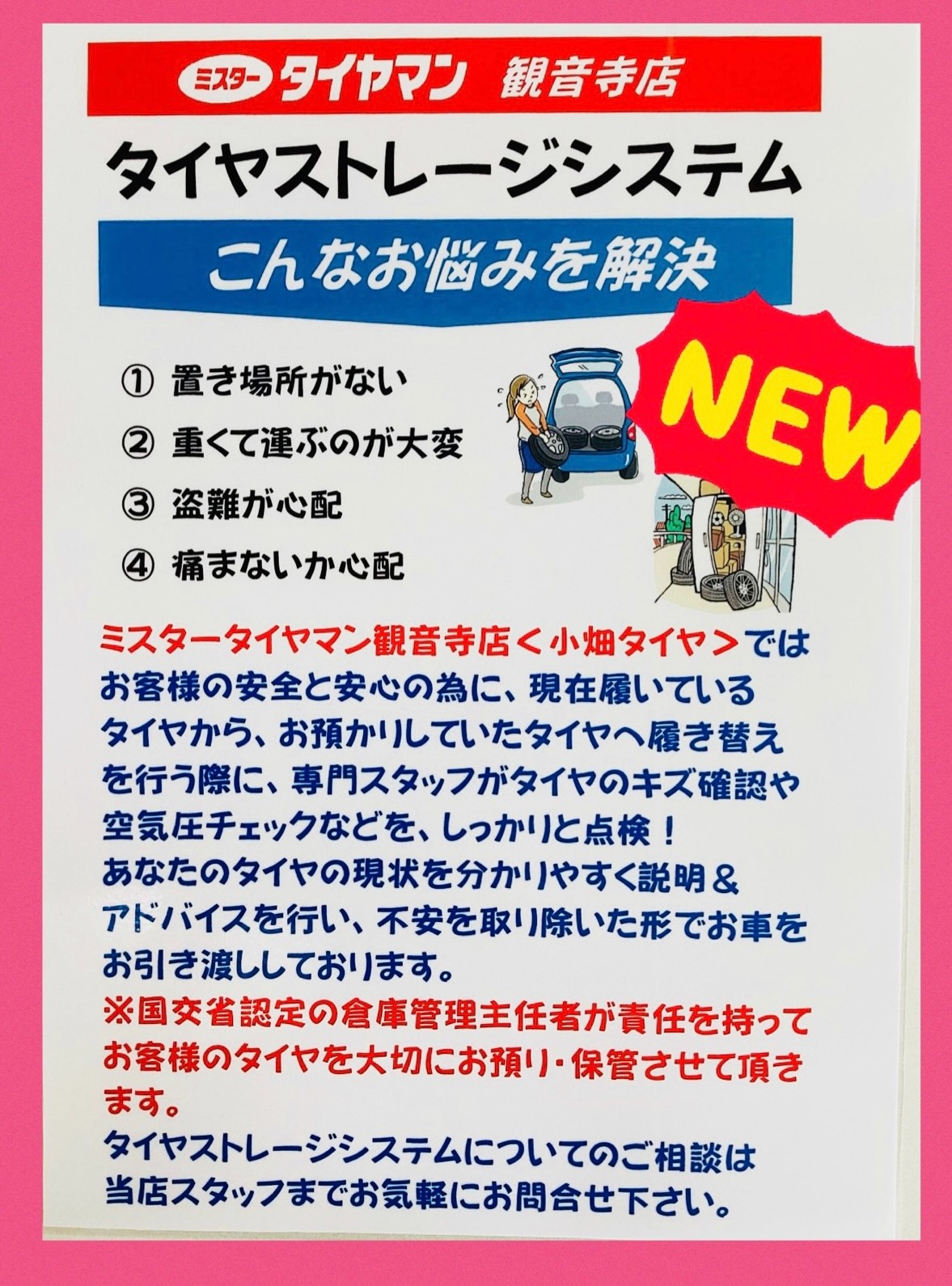 タイヤの保管にお困りの方、是非お問合せ下さい。