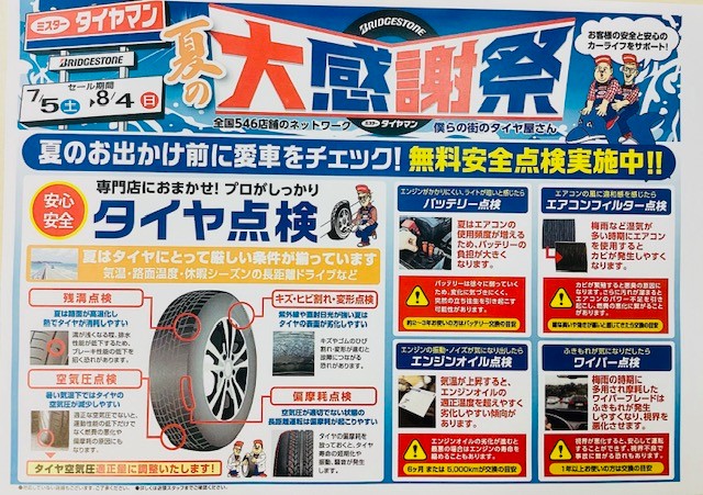 ミスタータイヤマン観音寺店<小畑タイヤ>が夏の大感謝祭開催中です!