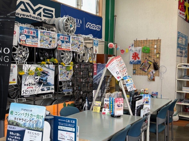 タイヤだけでなく、バッテリー交換やオイル交換、ワイパー交換、他にも無料安全点検を行っております。