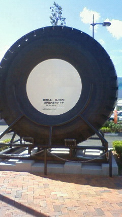 駅を出ると大きなタイヤがお出迎えしてくれます。(デカイ!!)