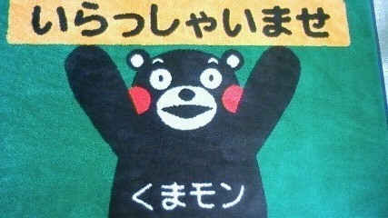 当店でも店内入り口でくまもんがお出迎えしています。