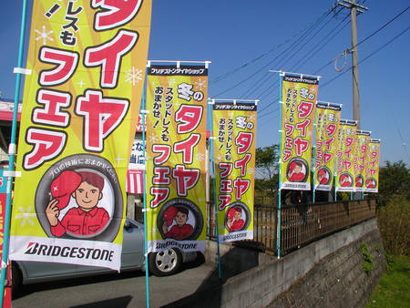 店頭のぼりを秋冬バージョンにしました。