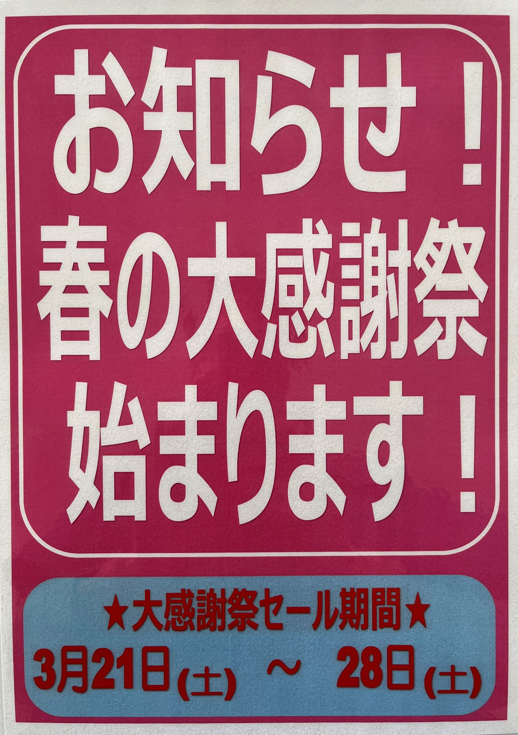 今日は「春の大感謝祭」のお知らせです!