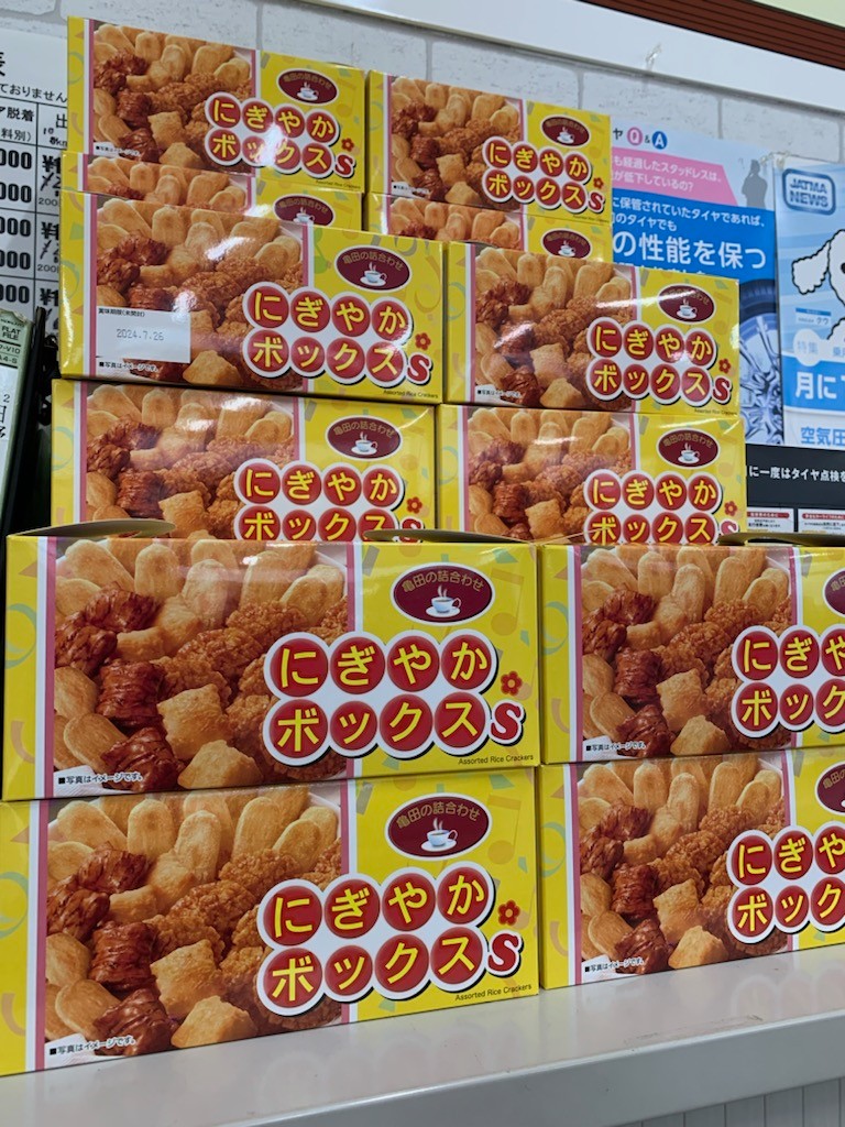 期間中にブリヂストンのタイヤを4本お買い上げで亀田製菓さんの「にぎやかボックス」をプレゼント!