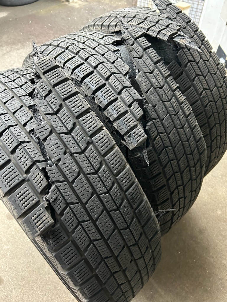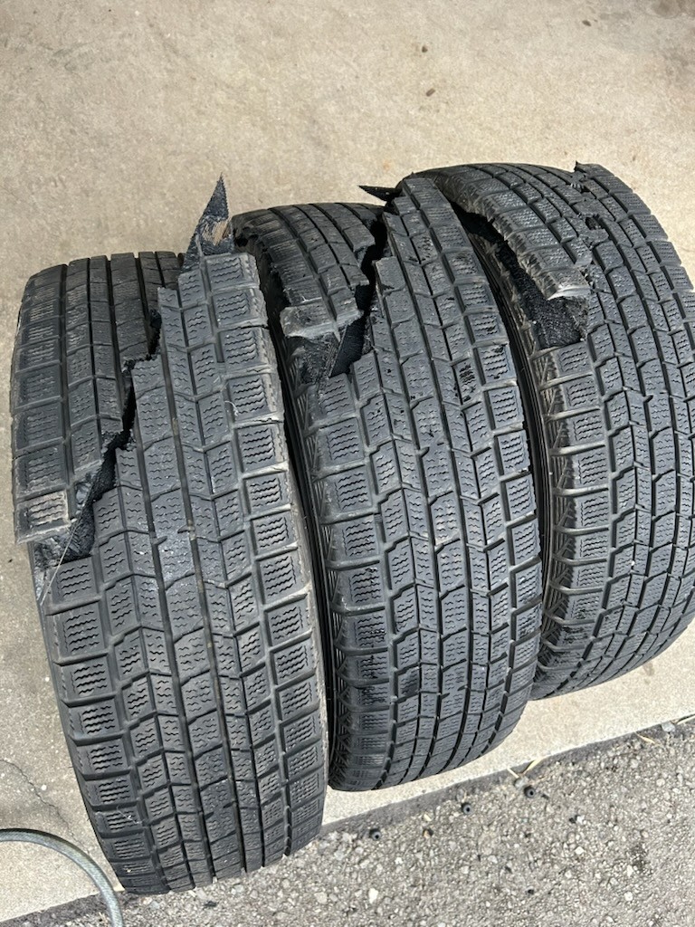 そろそろスタッドレスタイヤの準備を…、と倉庫からホイール付きのスタッドレスタイヤを出そうとしたら
