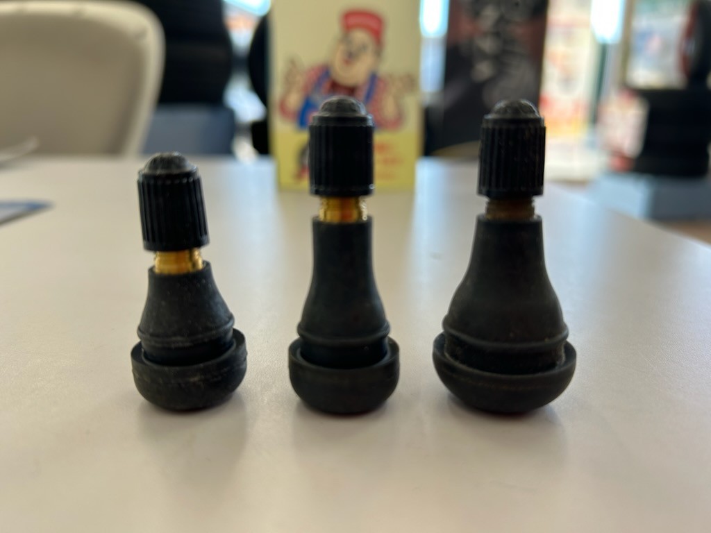 アルミホイール用の金属バルブ、最近増えてきた空気圧センサー付きバルブもあります!
