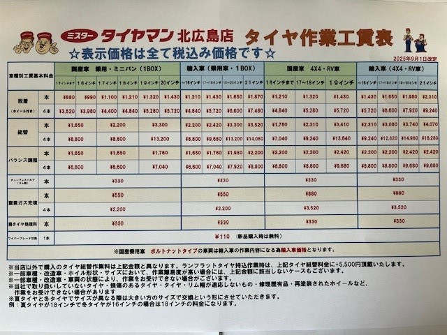 いつも ミスタータイヤマン北広島店 を御利用いただきありがとうございます。
