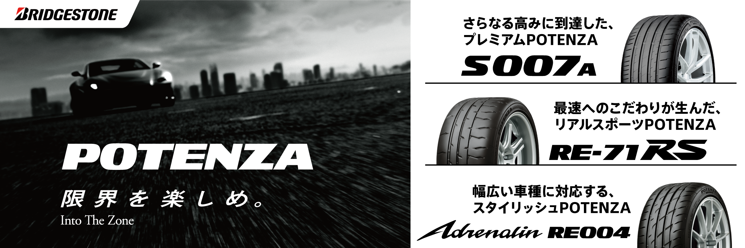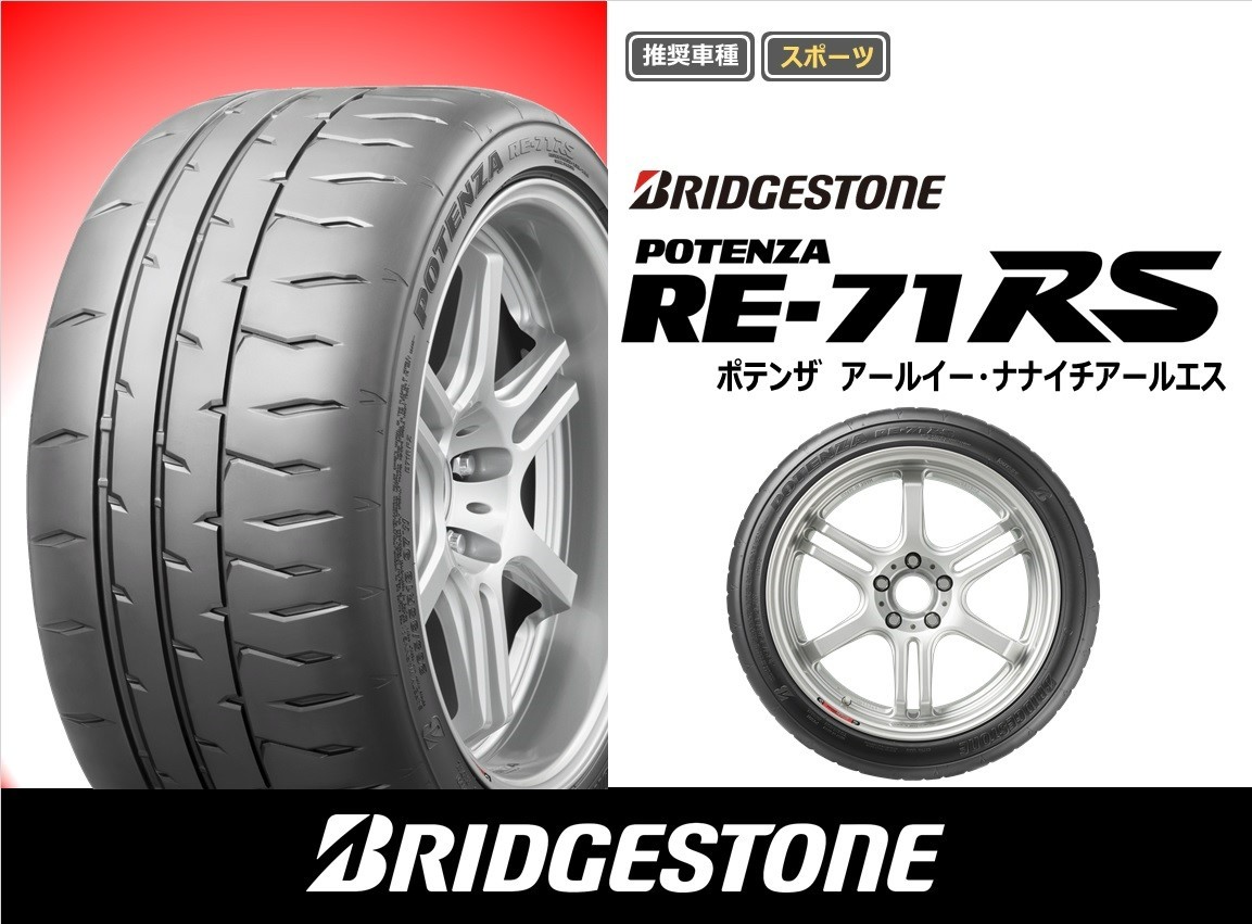 「POTENZA」は1979年の誕生以来、世界のハイパフォーマンスカーに認められモータースポーツの世界でも結果を残し続けているブリヂストンのスポーツタイヤブランドです。「RE71」「RE-71R」の性能や情熱を引き継ぐ意味を込め、「RE-71RS(R=Racing、S=Second/Sport)」と名付けています。