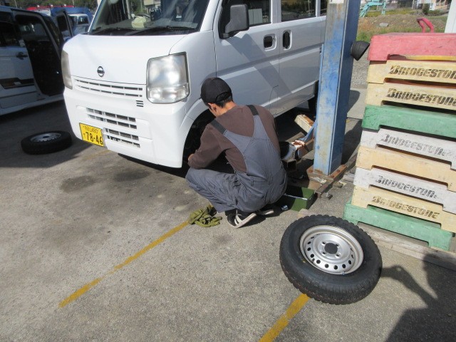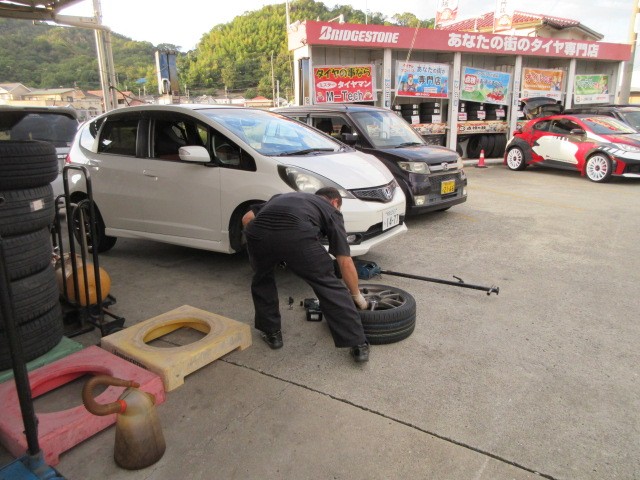 フィットさんもタイヤ交換です。毎度ありがとうございます。